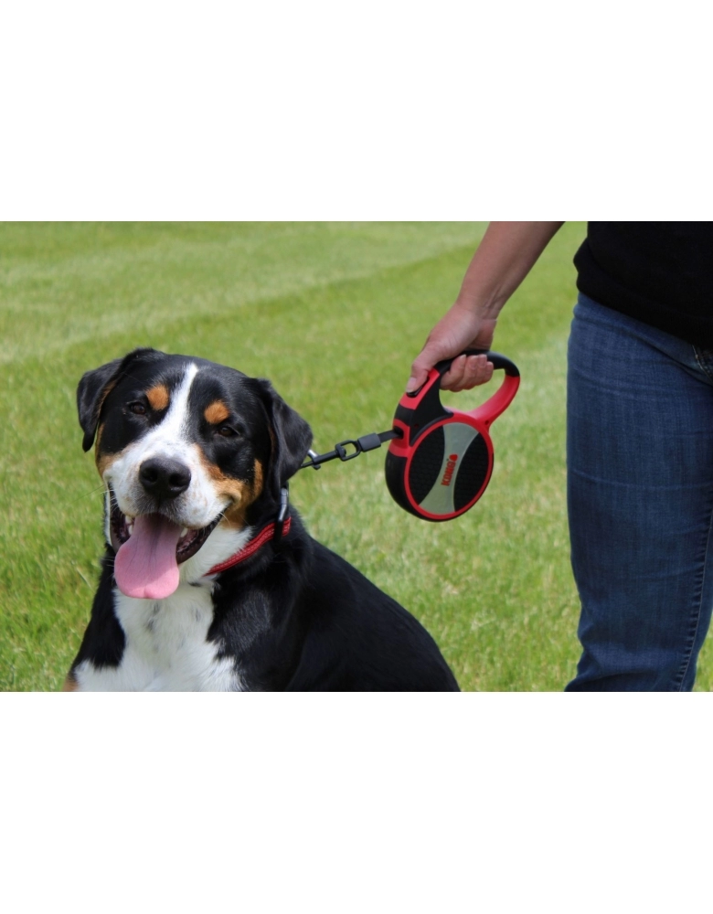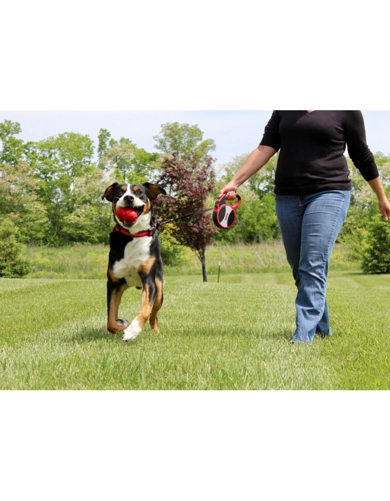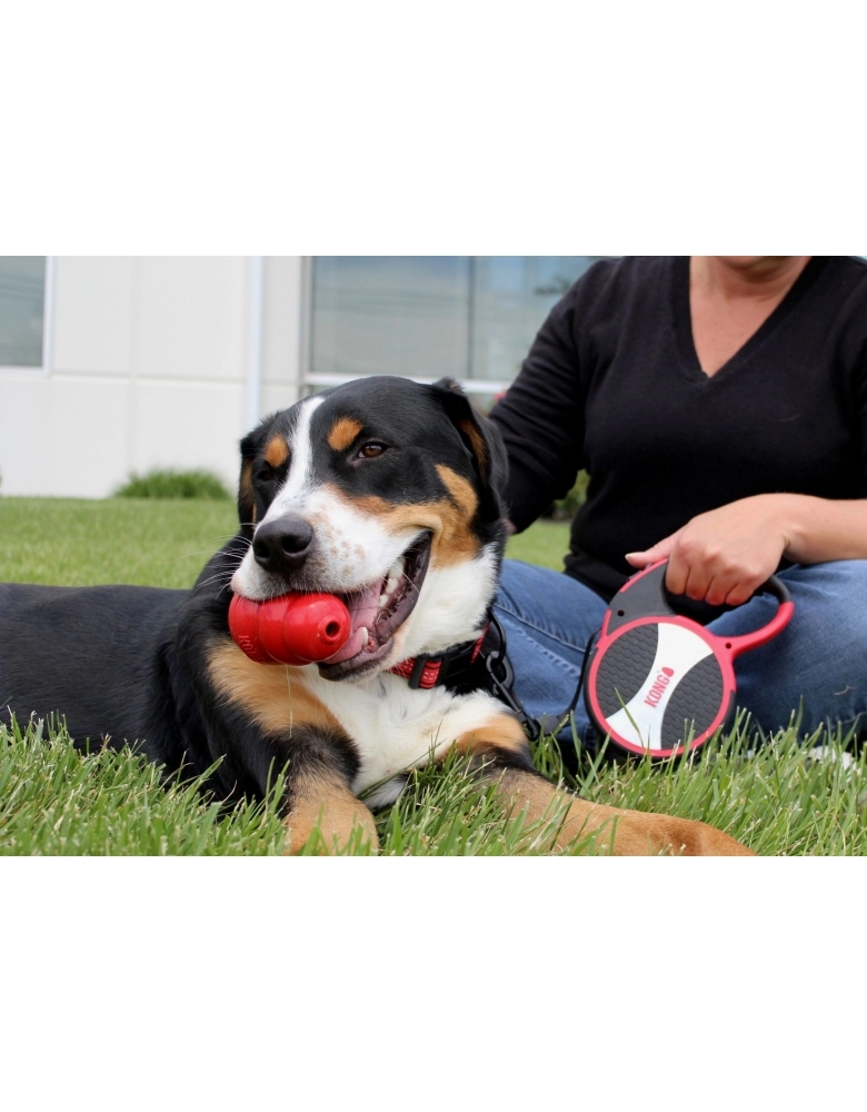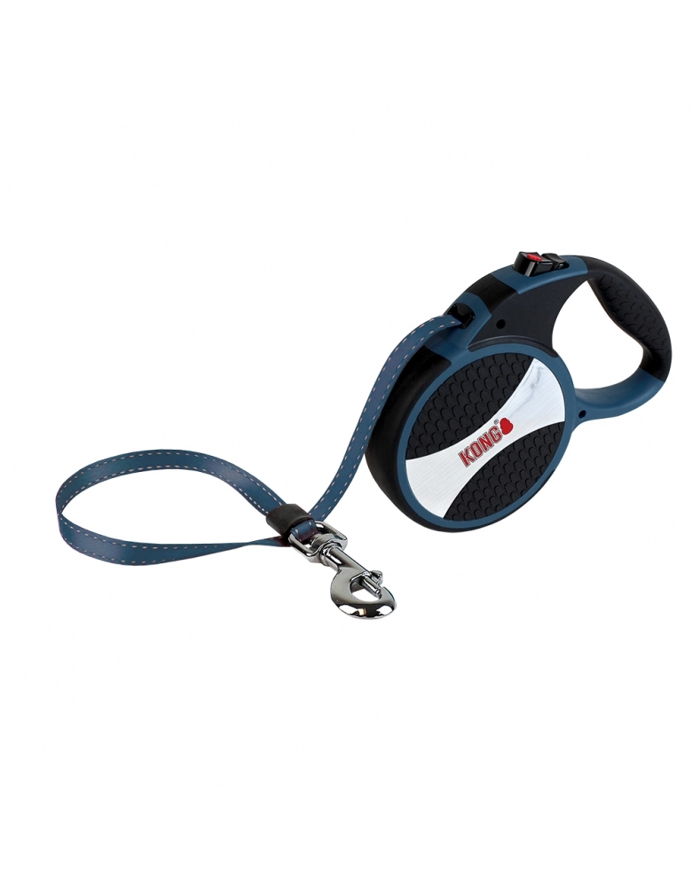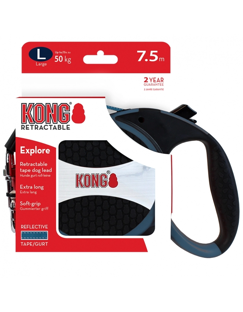 KONG Retractable Explore é uma guia retrátil de extrema qualidade e beleza feita para cães grandes (até 50kg) e que permite maior liberdade, pois possui fita com 7,5m de comprimento. Design inovador e sistema de travamento fácil e seguro. Disponível em diversas cores. Pegada macia e confortável para passeios livres e seguros.