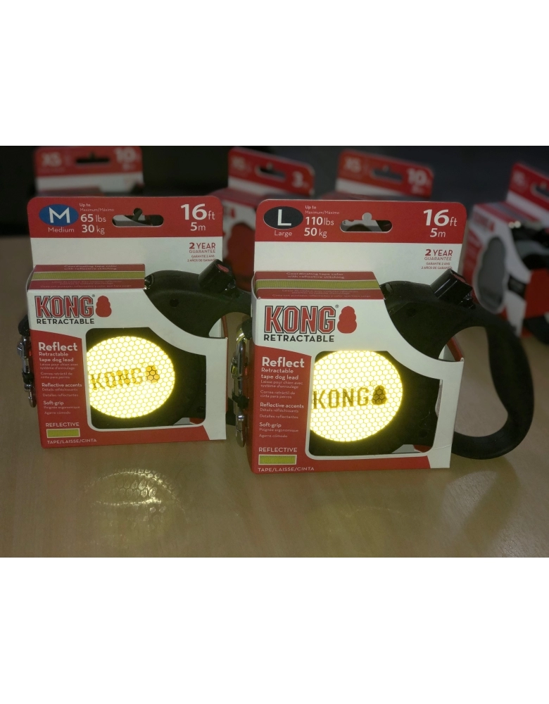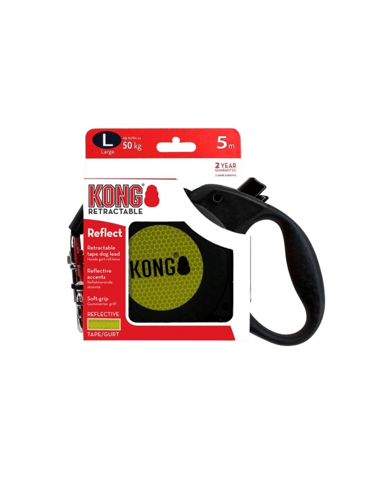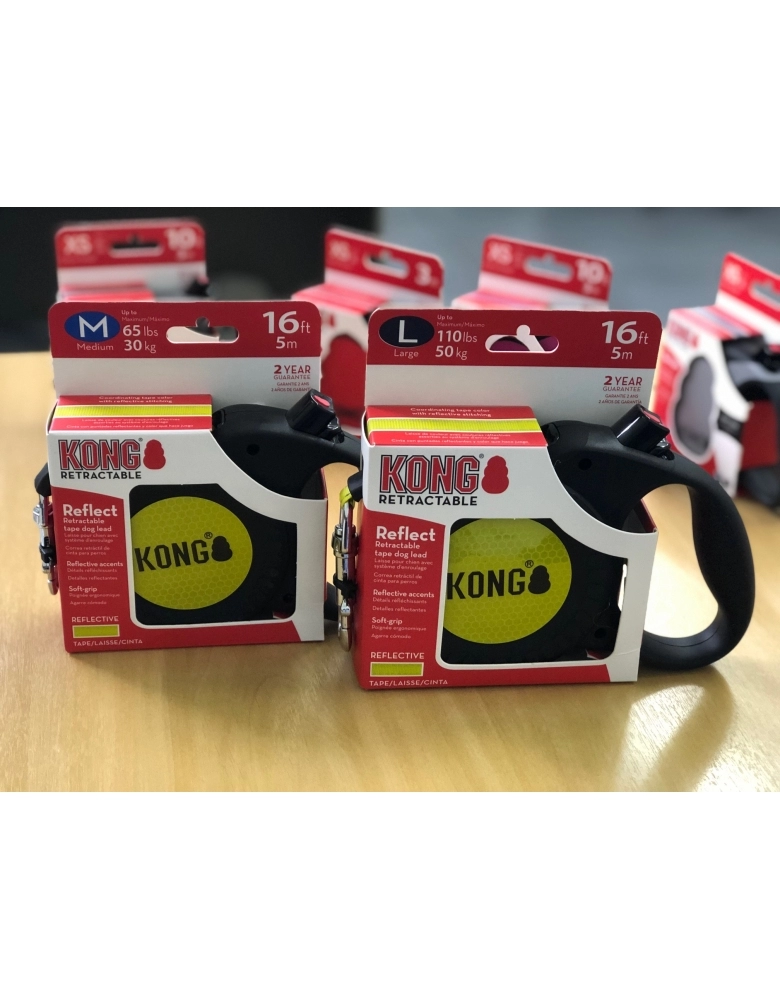 KONG Retractable Reflect é uma guia retrátil de extrema qualidade e beleza. Design inovador e sistema de travamento fácil e seguro. Pegada macia e confortável para passeios livres e seguros. A Linha Reflect possui corpo refletivo e fita com pontos refletivos que dão maior visibilidade e segurança para passeios noturnos mais seguros.