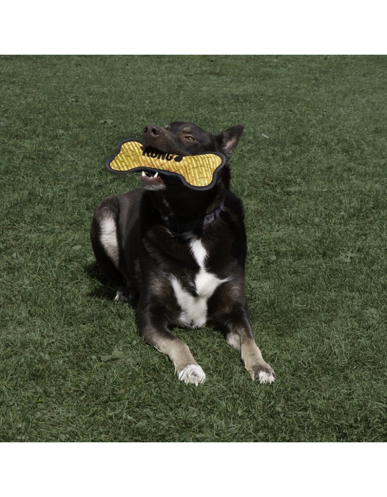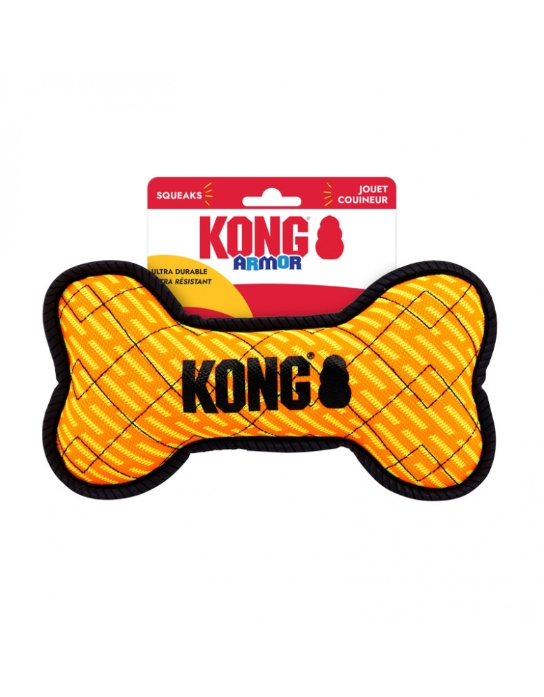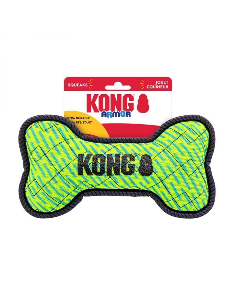 KONG Armor é um brinquedo feito com material reforçado com três camadas de tecido duráveis para brincadeiras extremas. Seu tecido exterior é forte e refletivo. Se ilumina na luz e brilha a noite. Perfeito para brincadeiras interativas de jogar e buscar de dia, de noite em qualquer terreno e lugar. Possui apito.