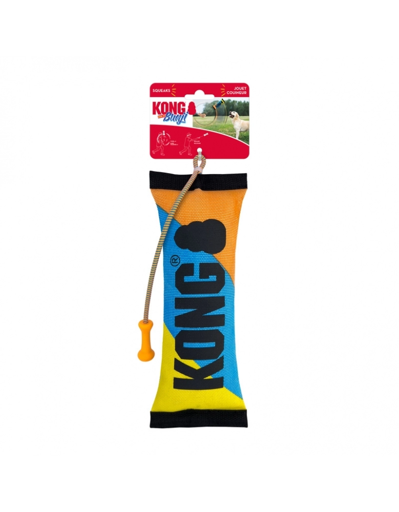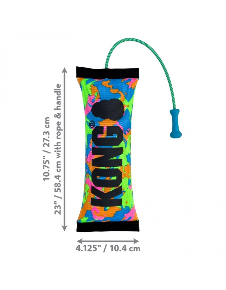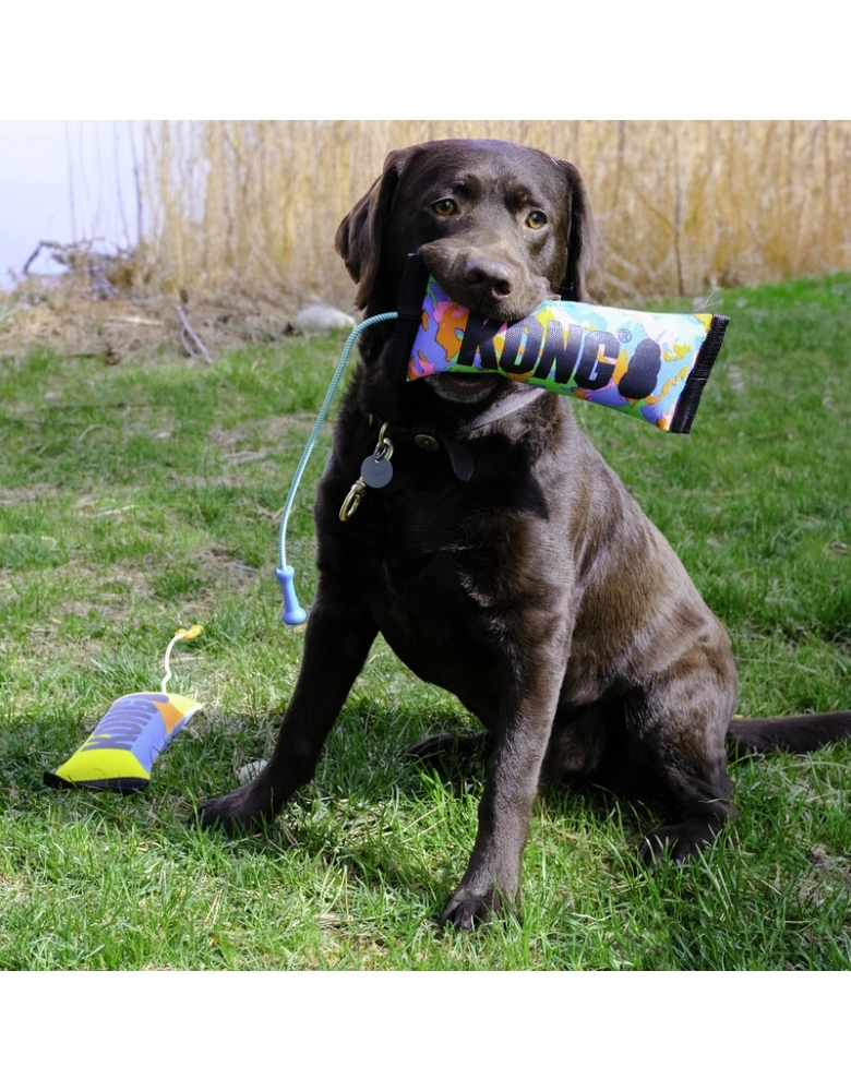 KONG Bunji High-Viz Ball é um brinquedo desenvolvido para brincadeiras de jogar e buscar diurnas ou noturnas, pois brilha no escuro! A corda torna os arremessos mais longos e fáceis. Flutua na água. Indicado para cães de mordidas leves a moderadas. Para cães de mordidas destrutivas e poderosas, prefira sempre brinquedos KONG da linha de borracha. Modo de usar: Segure pela corda, gire e arremesse. Para brincar à noite, deixe sob a luz por alguns minutos.