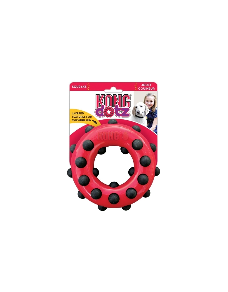 KONG Dotz fornece uma variedade de diversão de mastigação com texturas em camadas que atraem e encantam os mais ansiosos dos mastigadores. O salto lúdico e imprevisível do brinquedo cria emoção para os cães enquanto os protuberâncias estão ocupados limpando dentes e gengivas.