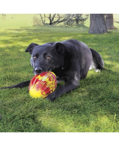 KONG Flexball Sport é um brinquedo interativo que possui cristas profundas que servem para facilitar a pegada em uma brincadeira de jogar e buscar. Feito com material resistente para brincadeiras energéticas e duradouras. Flutua na água para mais diversão.