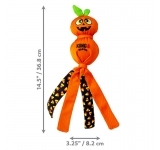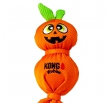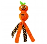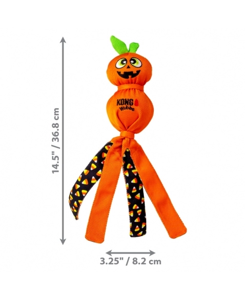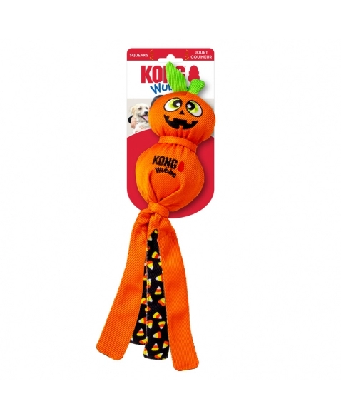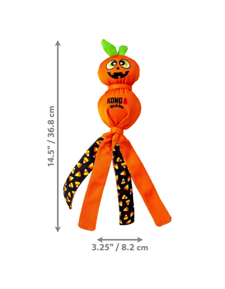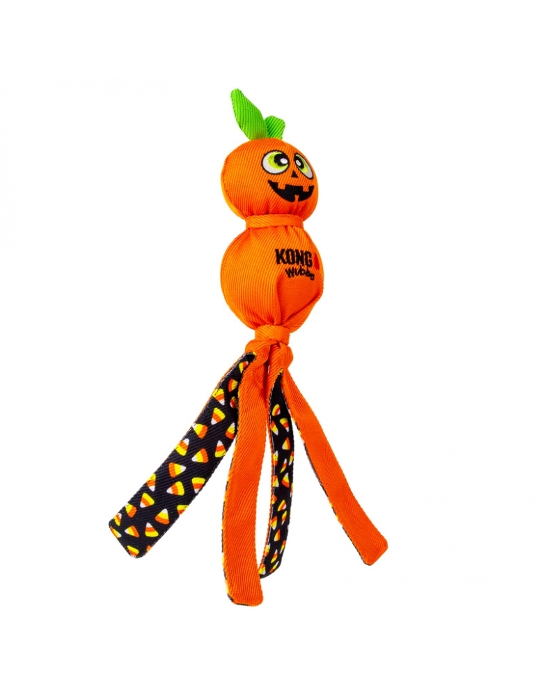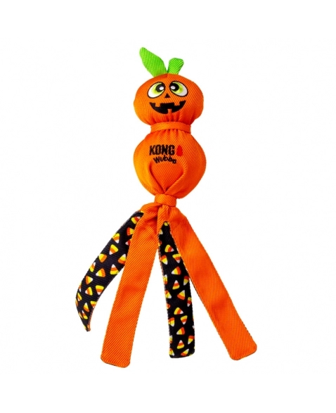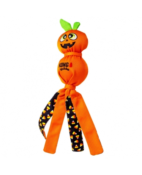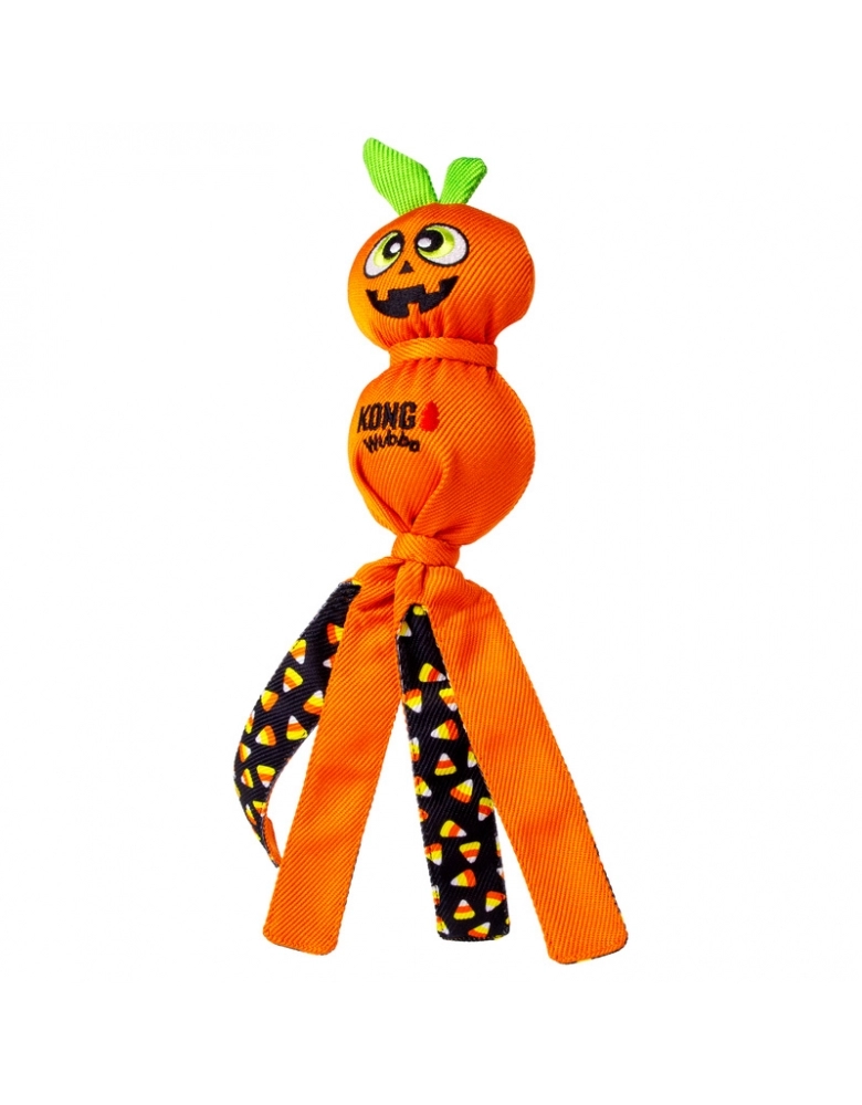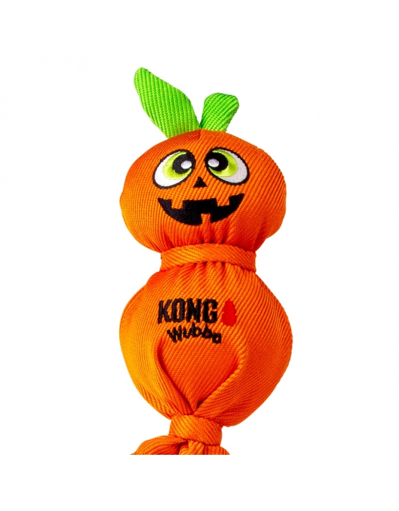 KONG Haloween Wubba Ballistic é um brinquedo desenvolvido para cães de mordida leve e não destruidores. Brinquedo desenvolvido para brincadeiras de jogar e buscar, e para satisfazer os instintos naturais do cão de chacoalhar a presa capturada. Sua cauda solta simula pernas em luta. Além disso, servem para segurar o brinquedo e arremessa-lo mais longe. Seu tecido reforçado garante uma durabilidade maior se usado corretamente. Possui um apito para aumentar o engajamento.