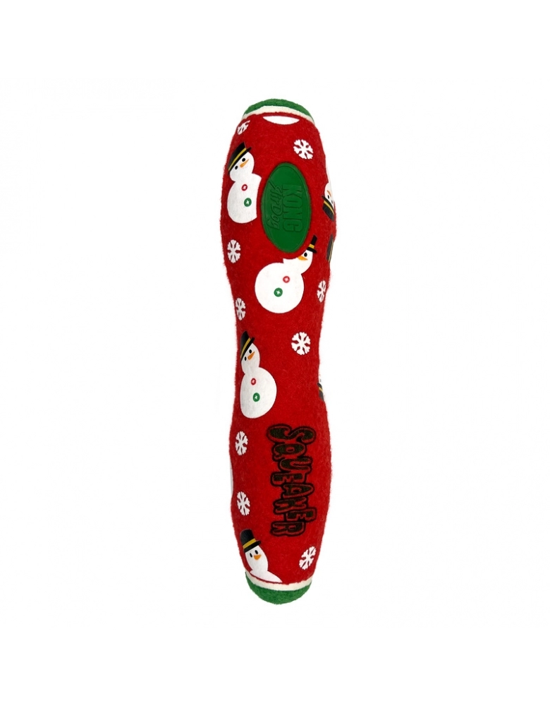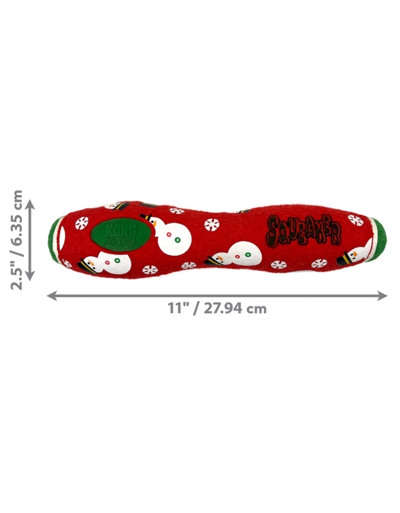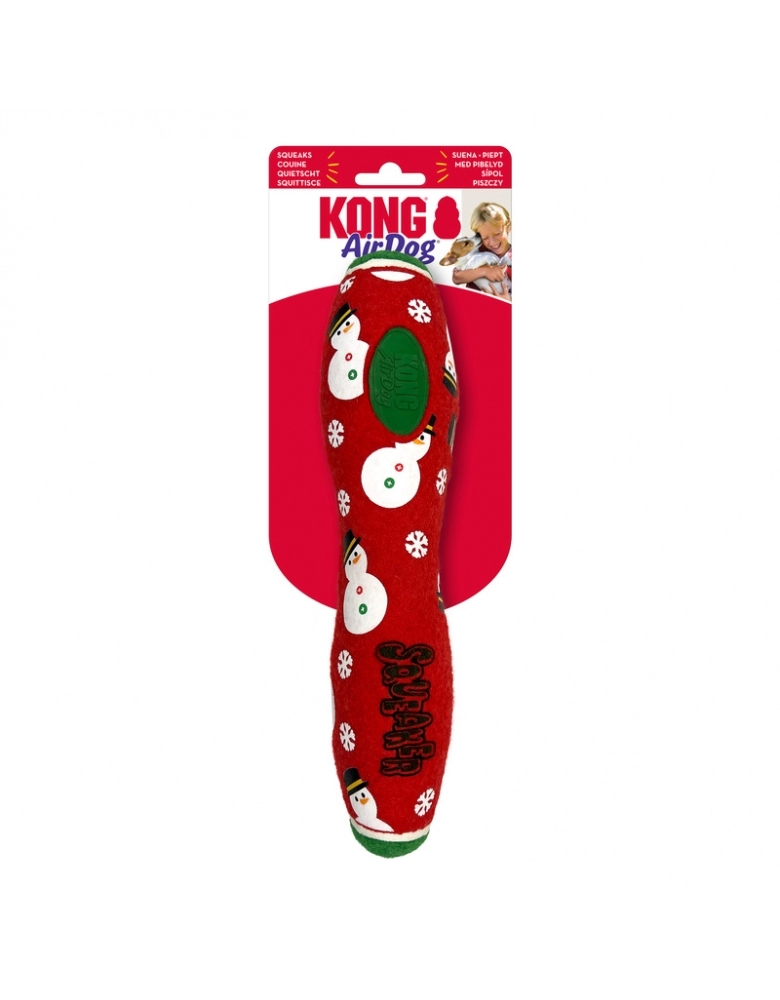 O KONG Holiday AirDog combina dois brinquedos favoritos - uma bola de tênis e um apito - em um fabuloso brinquedo de busca para ajudar os cachorros a entrarem nas festas de fim de ano com muita diversão. O material não abrasivo da KONG Tennis é mais macio para os dentes do que o feltro da bola de tênis comum. O apito chama os cães para brincar, enquanto o quique proporciona rebotes imprevisíveis, rolando e buscando diversão com um brinquedo natalino para cães.
