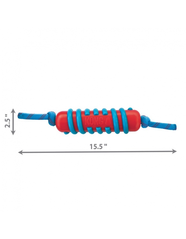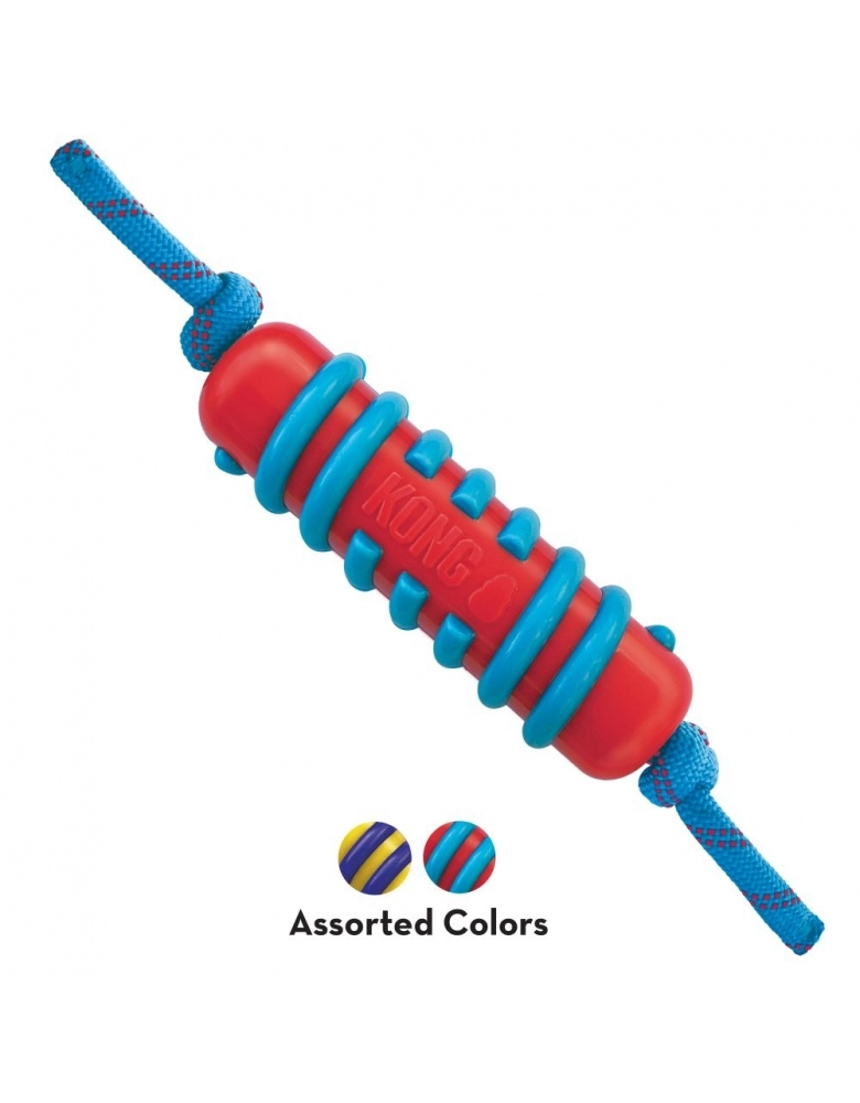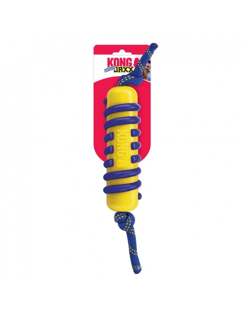 KONG Jaxx Brights Stick w/ Rope é um brinquedo desenvolvido para cabos de guerra ou brincadeiras de jogar e buscar. Possui material resistente e confortável que recompensa a mordida no lugar certo. Muito utilizado para direcionamento de mordidas desejáveis, ou seja, em vez de morder suas mãos ou objetos da casa, preferirá os pegadores ou corda deste brinquedo. A corda resistente proporcionará brincadeiras intermináveis e grande durabilidade. Indicado para cães de mordidas leves a moderadas. Para cães de mordidas destrutivas e poderosas, prefira sempre brinquedos KONG da linha de borracha. Importante: Não é um objeto de roer. Não deve ser deixado sozinho com o cão até ter certeza de que o cão não irá destruí-lo, nem por alguns minutos. Para cães com mordida forte e destrutivas, prefira os brinquedos de borracha natural. Acabada a brincadeira, guarde para a próxima.