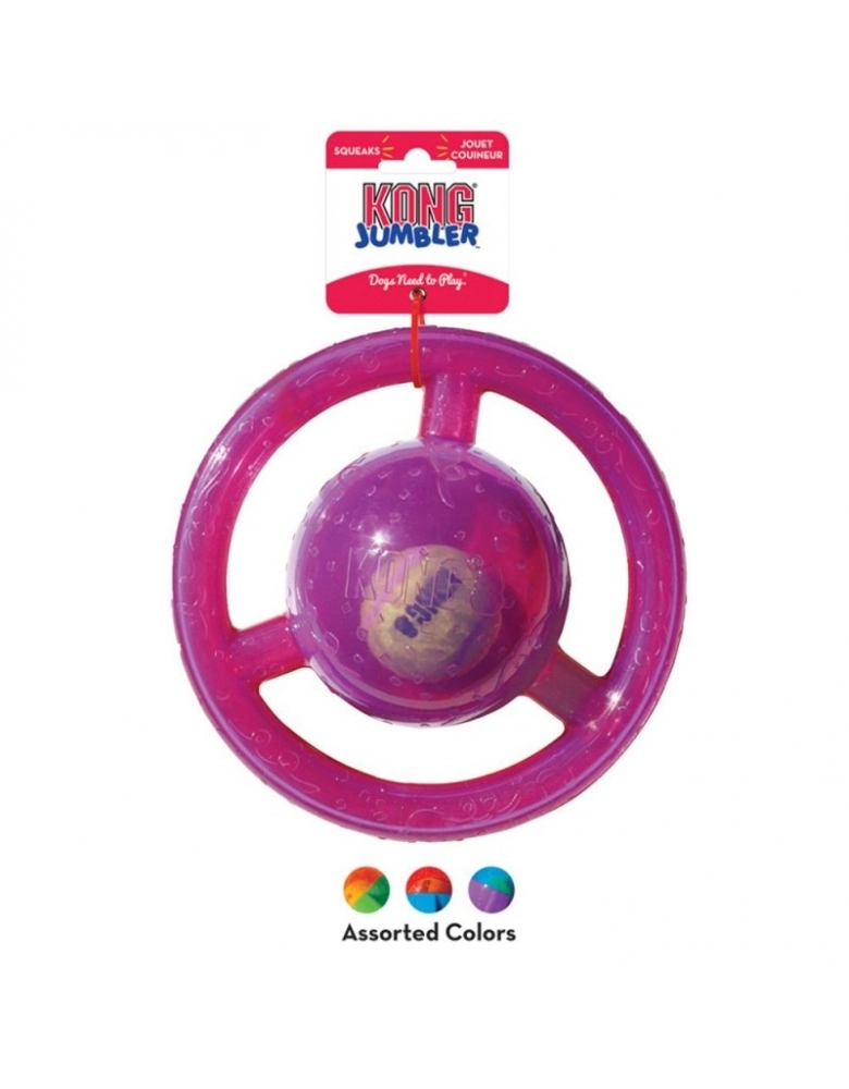 O KONG Jumbler é uma bola dois em um para o dobro da diversão interativa. A bola de tênis interna e o guincho alto incentivam o jogo, enquanto as alças tornam mais fácil pegar e sacudir a bola. O Jumbler foi projetado como um brinquedo resistente e é ideal para jogos de busca. Disponível em duas formas e tamanhos, o KONG Jumbler garante jogo emocionante e ativo para você e seu cão.