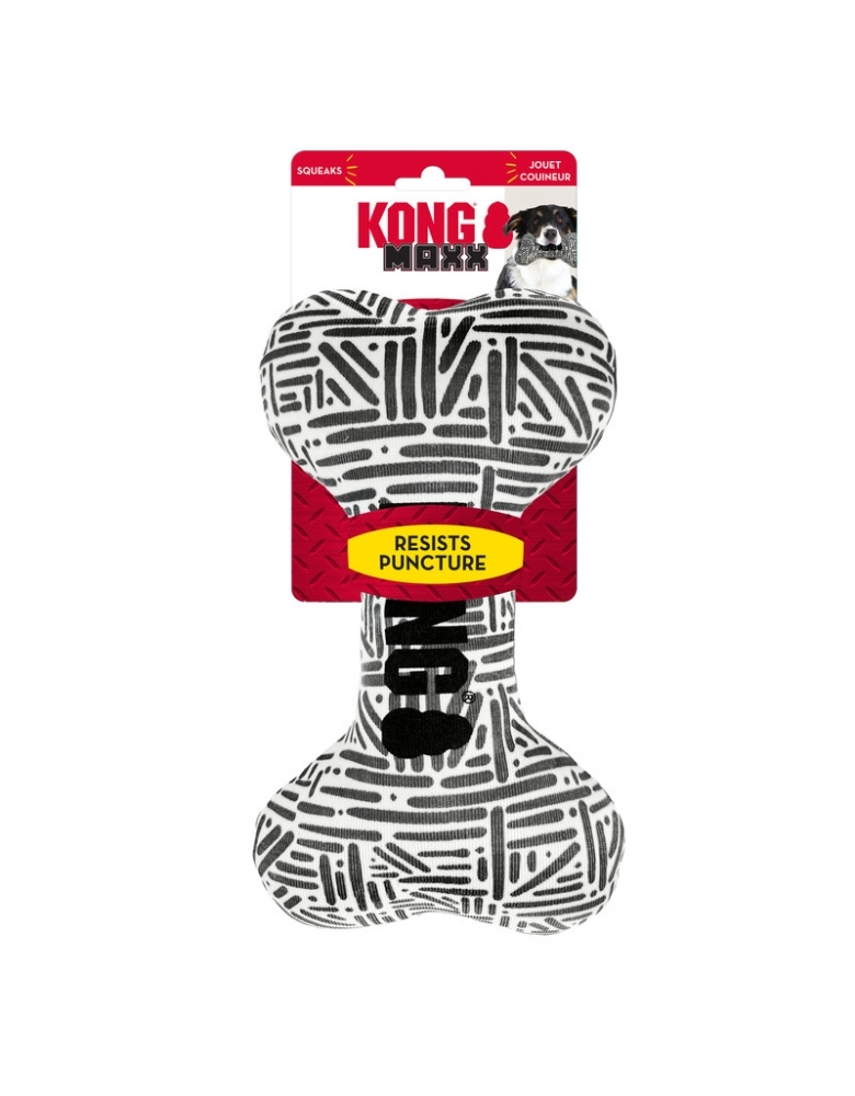 KONG Maxx é um brinquedo desenvolvido para cães mordidas leves e moderadas e não destruidores. É um brinquedo extremamente durável para ser jogado para brincadeiras interativas de luta e jogar e buscar. Fabricado com um material desafiador, 5 vezes mais durável à perfuração que um tecido convencional. Possui apito para aumentar ainda mais o estímulo da brincadeira.