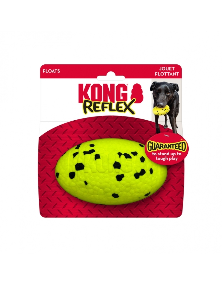 KONG Reflex é um brinquedo desenvolvido para cães de todas as mordidas desde que usado sob sua total supervisão. É um brinquedo durável para ser jogado para brincadeiras interativas, além de cabos de guerra. Fabricado com um material desafiador que satisfaz os instintos de mastigação e mordidas. Importante: Feito para sessões de mordidas duras. Promete resistir bravamente e por isso a KONG oferece 30 dias de satisfação garantida. Caso você não esteja satisfeito com esse brinquedo no período indicado, por favor, mande um e-mail para lumare@lumareimport.com.br e faremos a troca para você. Por favor mande a nota fiscal de compra no email e a razão da troca.