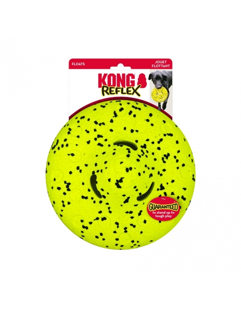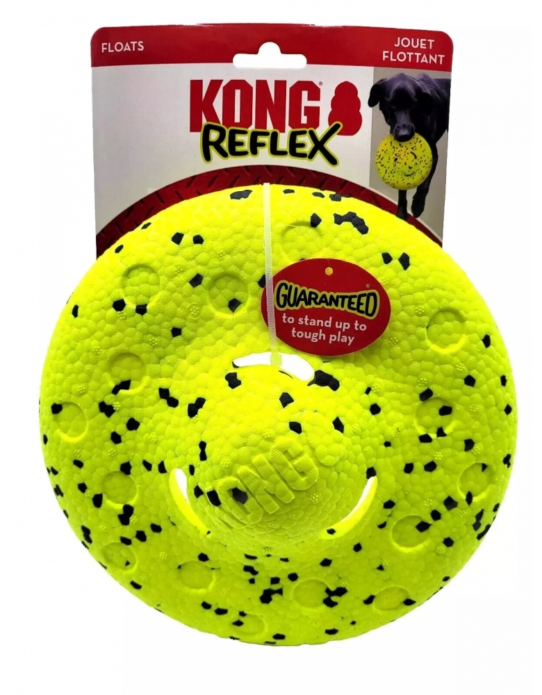 KONG Reflex é um brinquedo desenvolvido para cães de todas as mordidas desde que usado sob sua total supervisão. É um brinquedo durável para ser jogado para brincadeiras interativas, além de cabos de guerra. Fabricado com um material desafiador que satisfaz os instintos de mastigação e mordidas. Importante: Feito para sessões de mordidas duras. Promete resistir bravamente e por isso a KONG oferece 30 dias de satisfação garantida. Caso você não esteja satisfeito com esse brinquedo no período indicado, por favor, mande um e-mail para lumare@lumareimport.com.br e faremos a troca para você. Por favor mande a nota fiscal de compra no email e a razão da troca.