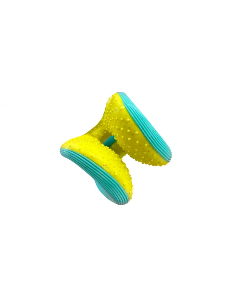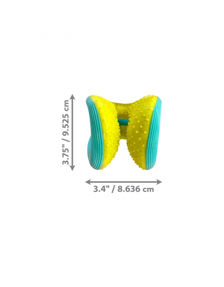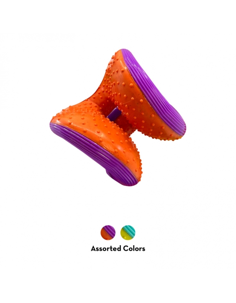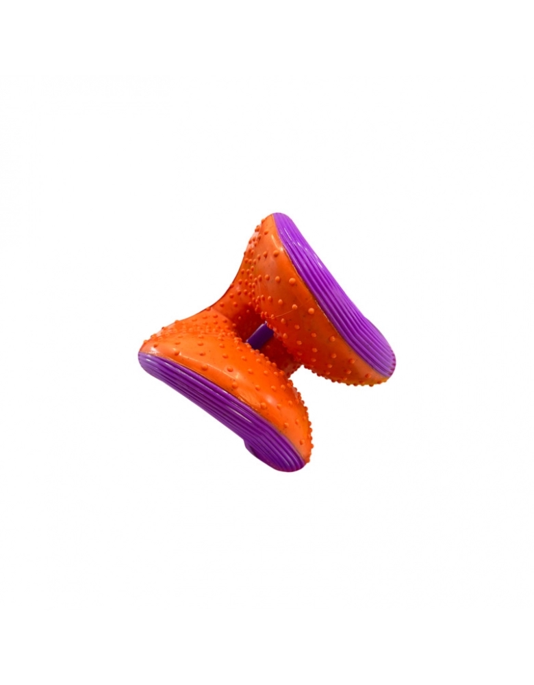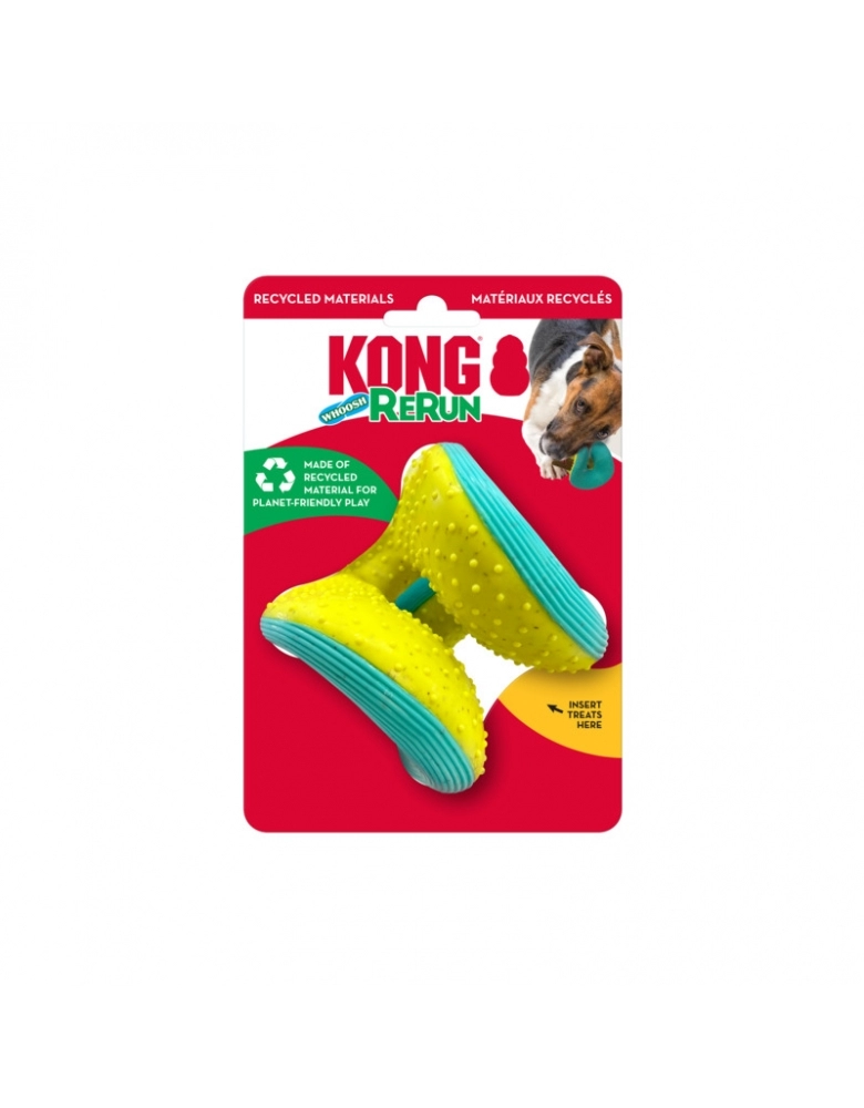 KONG Rerun Whoosh é um brinquedo feito para segurar petiscos e que ajuda a limpar os dentes e gengivas. Possui um apito que mais lembra uma ventania, mais silencioso para não perturbar os papais. Perfeito pra ser jogado em brincadeiras de jogar e trazer. Formato único para que ser mais fácil de agarrar. Fabricado com materiais reciclados.