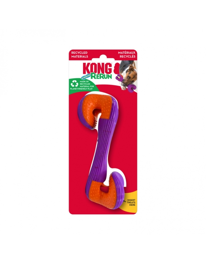 KONG Rerun Whoosh é um brinquedo feito para segurar petiscos e que ajuda a limpar os dentes e gengivas. Possui um apito que mais lembra uma ventania, mais silencioso para não perturbar os papais. Perfeito pra ser jogado em brincadeiras de jogar e trazer. Formato único para que ser mais fácil de agarrar. Fabricado com materiais reciclados.