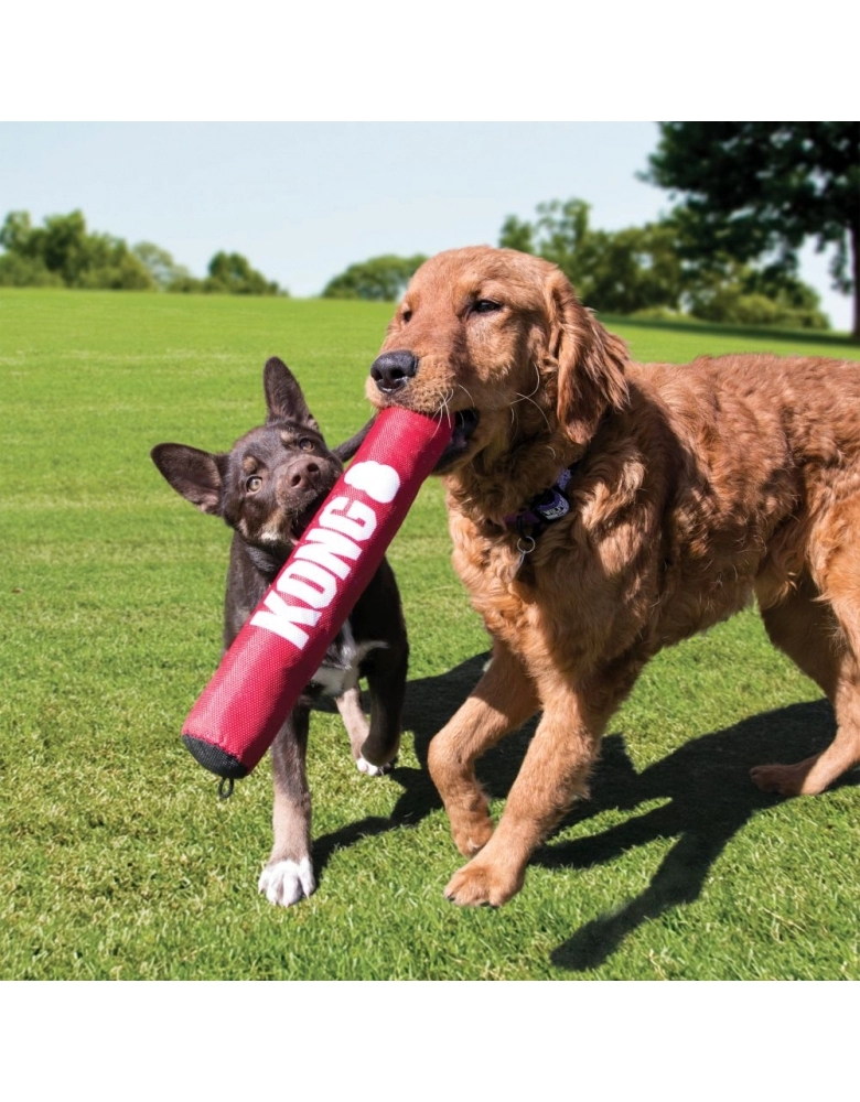 KONG Signature Stick é um brinquedo interativo que possui material reforçado, ideal para mordidas divertidas e brincadeiras de jogar e trazer. Possui apito e estalidos em seu corpo para tornar a diversão ainda mais estimulante. Seu corpo macio é gentil com gengivas e dentes. Ideal para treinamentos de buscar e trazer ou cabos de guerra. Destinado a brincadeiras interativas apenas. Flutua na água!
