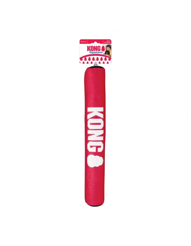 KONG Signature Stick é um brinquedo interativo que possui material reforçado, ideal para mordidas divertidas e brincadeiras de jogar e trazer. Possui apito e estalidos em seu corpo para tornar a diversão ainda mais estimulante. Seu corpo macio é gentil com gengivas e dentes. Ideal para treinamentos de buscar e trazer ou cabos de guerra. Destinado a brincadeiras interativas apenas. Flutua na água!
