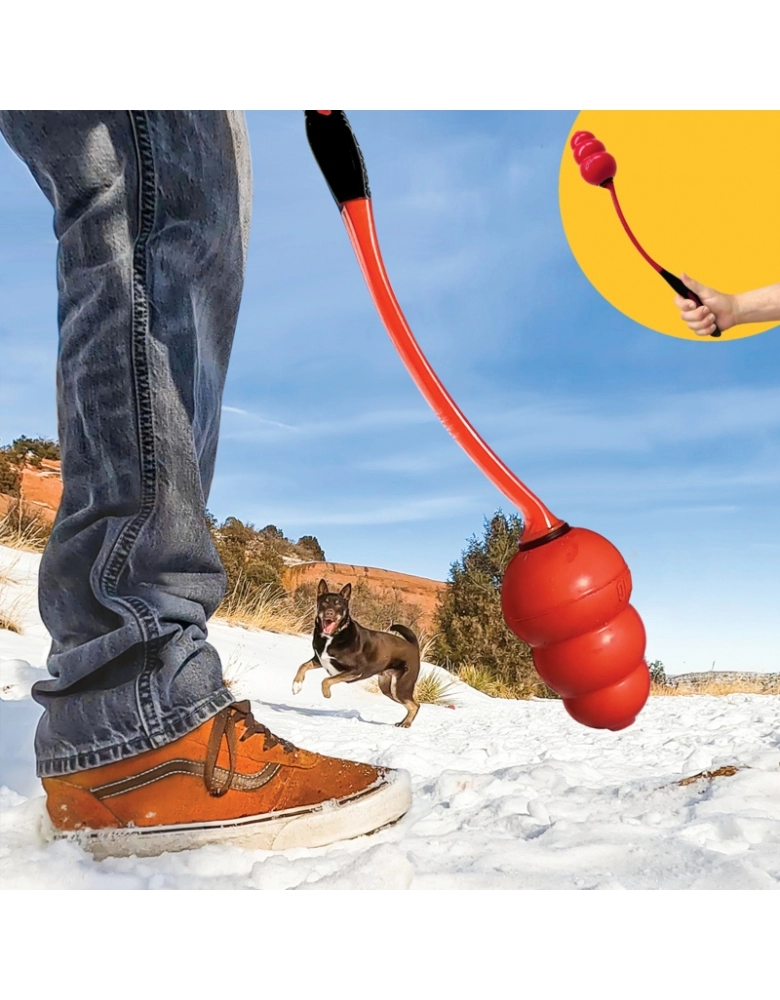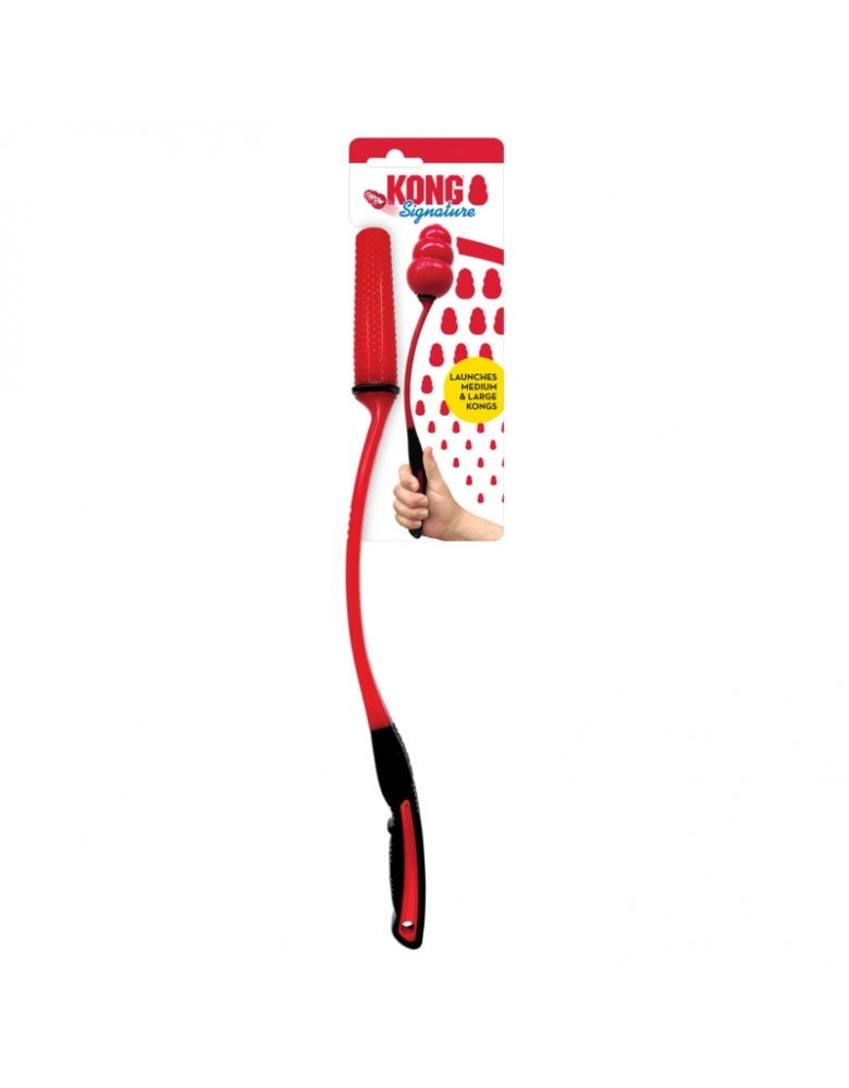 KONG Signature Throw é um brinquedo desenvolvido para lançar KONGs médios e grandes à longas distâncias. Com formato ergonômico, pegada emborrachada que ajuda a pegar o KONG sem pôr as mãos e brincar à valer. Possui um buraco para que você possa pendura-lo depois das brincadeiras ou conectá-lo à sua mochila de aventuras.