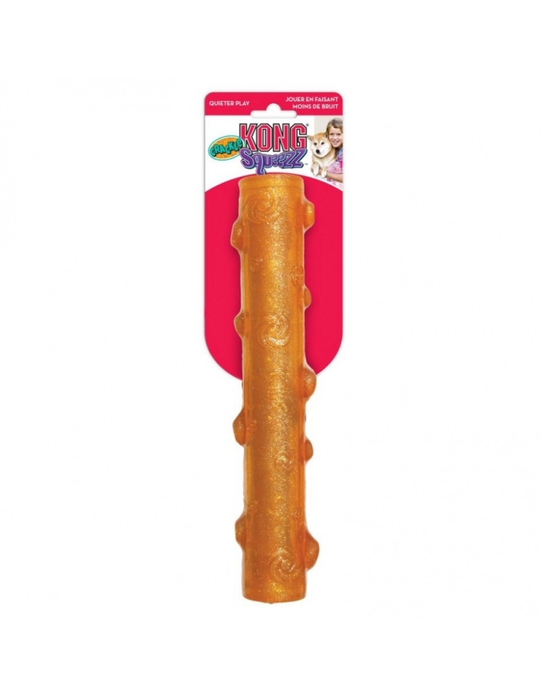 KONG Squeezz Crackle Stick é um brinquedo irresistível para os cães. Com seus estalidos (como se fosse o barulho de amassar plástico), estimulam os cães a morderem. Ideal para brincadeiras de jogar e trazer, cabos de guerra, lutinhas com mordidas, etc. Perfeito para brincadeiras entre você e seu melhor amigo.