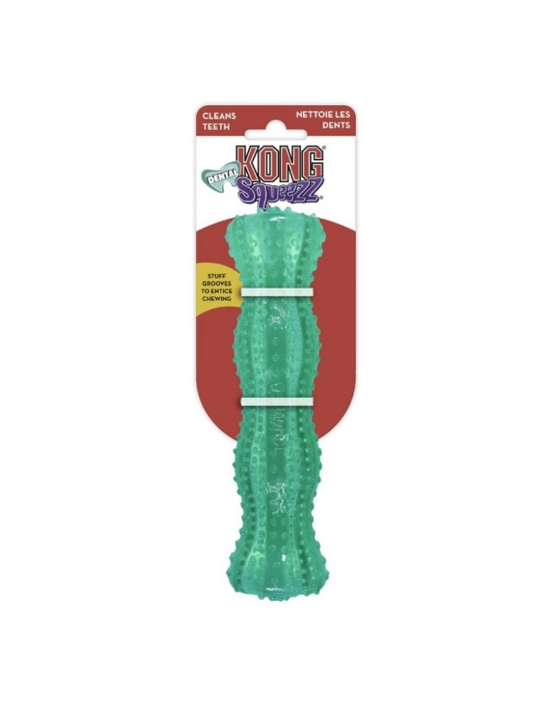 O KONG Dental Stick tem um design divertido que é ótimo para sessões de mastigação e jogos de jogar e trazer. Feito da mesma borracha KONG Classic, o brinquedo estimula o instinto natural de mastigar. Você pode usar pasta de dentes nas hachuras do produto para estimular o cão a mastigar e ao mesmo tempo que mastiga, limpa os dentes.