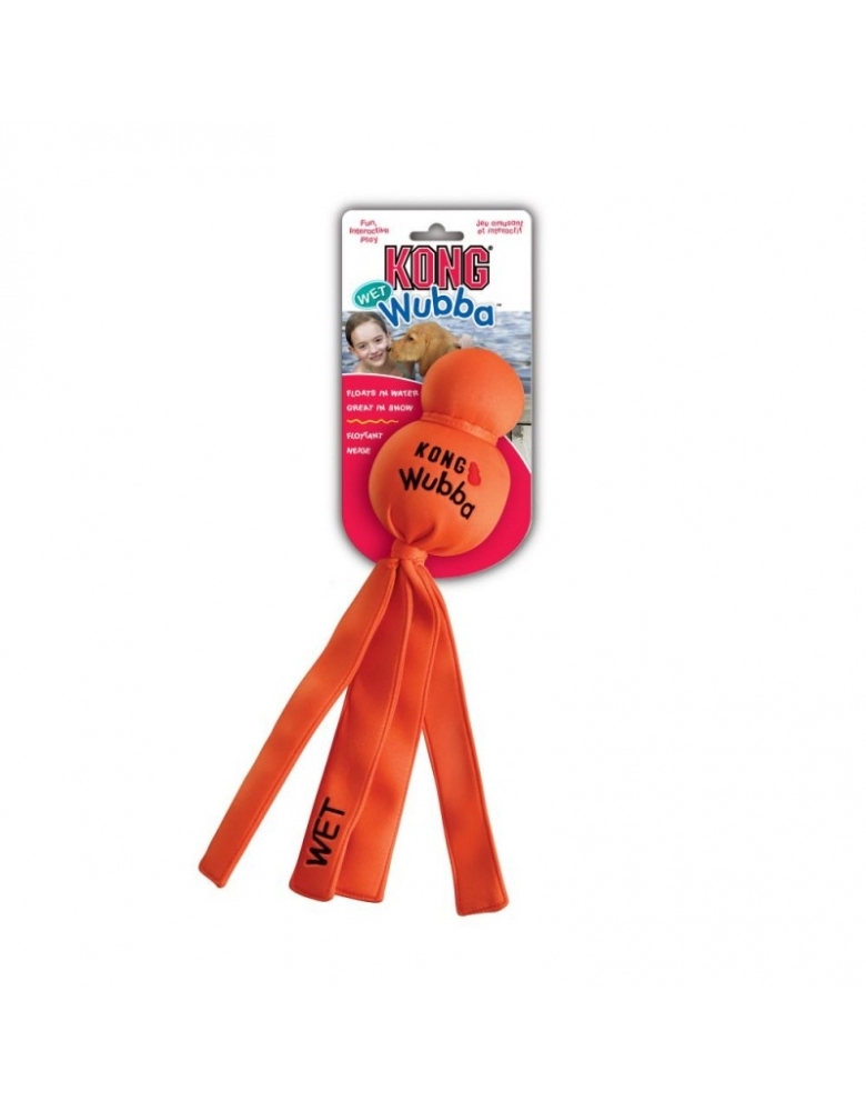 O Wet Wubba é coberto com neoprene (tecido de wetsuit) de fácil visualização. Este brinquedo flutuante é perfeito para água e neve. O Wet Wubba é rápido para secar quando o tempo de jogo acaba e pode ser usado como um brinquedo de puxar e lançar a qualquer momento.