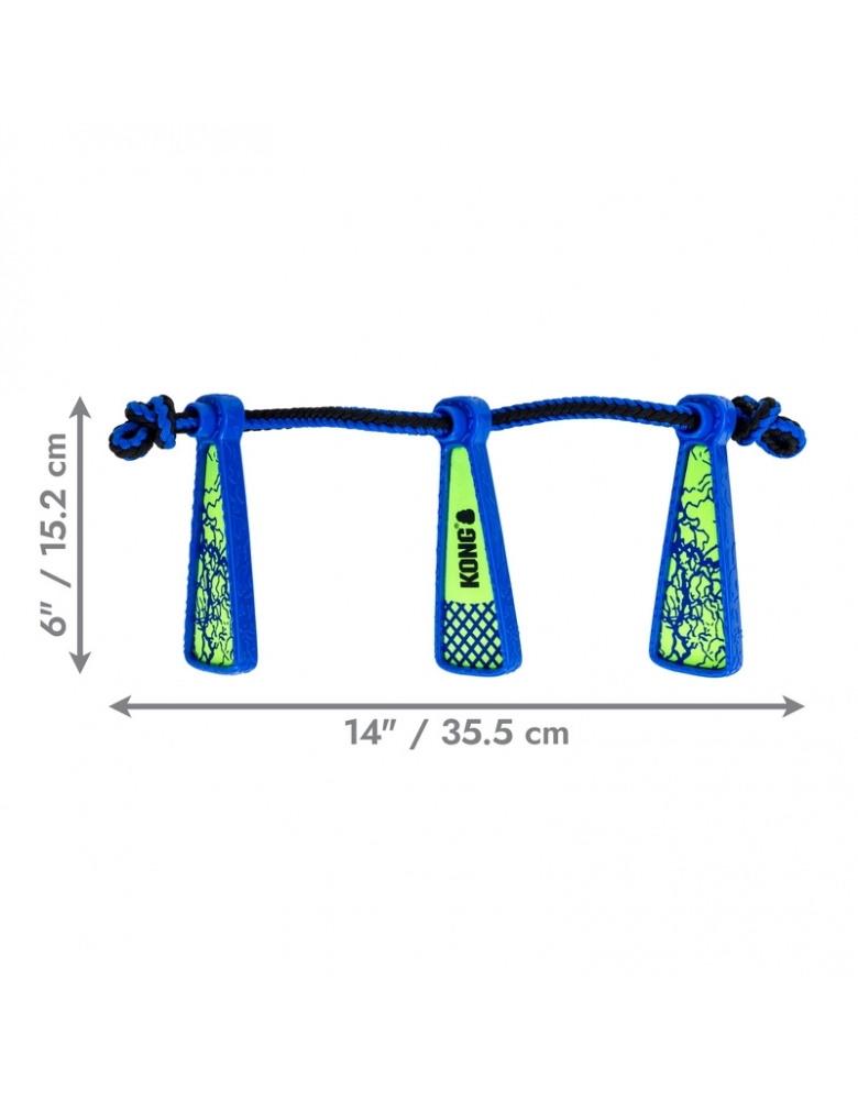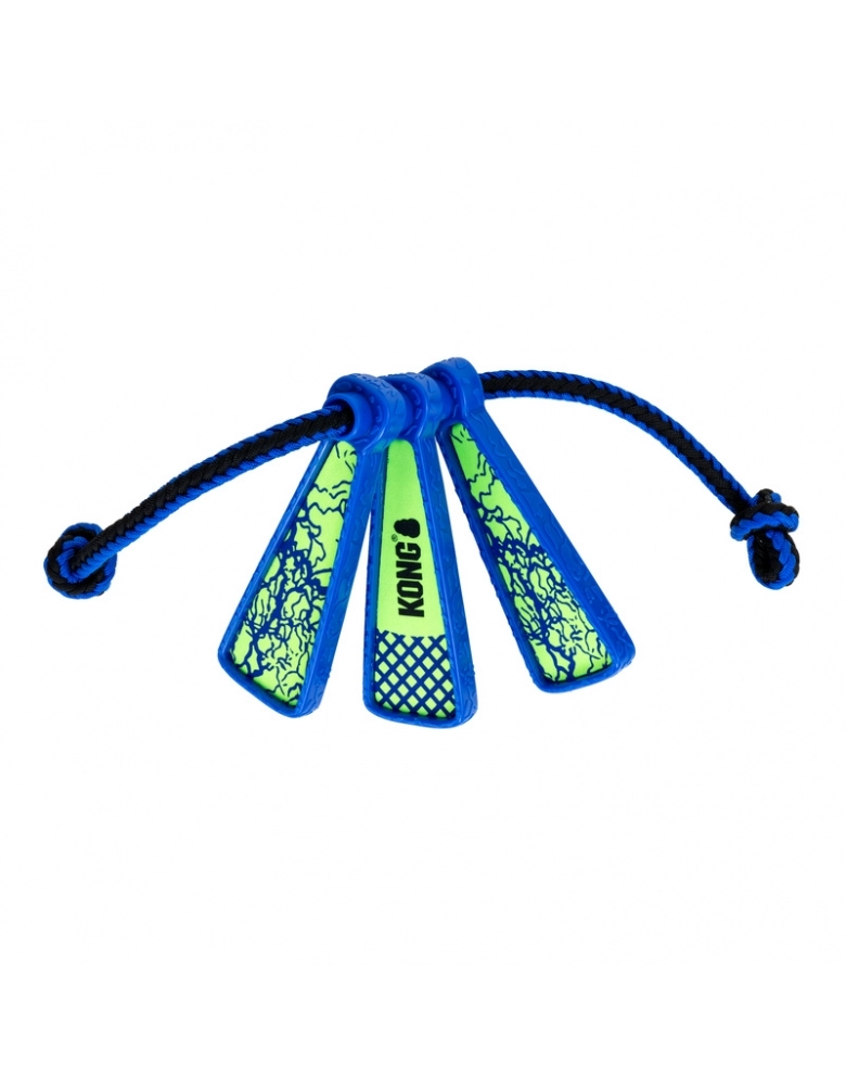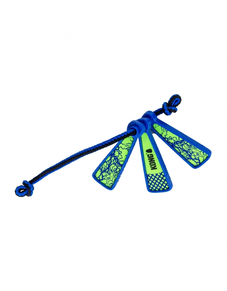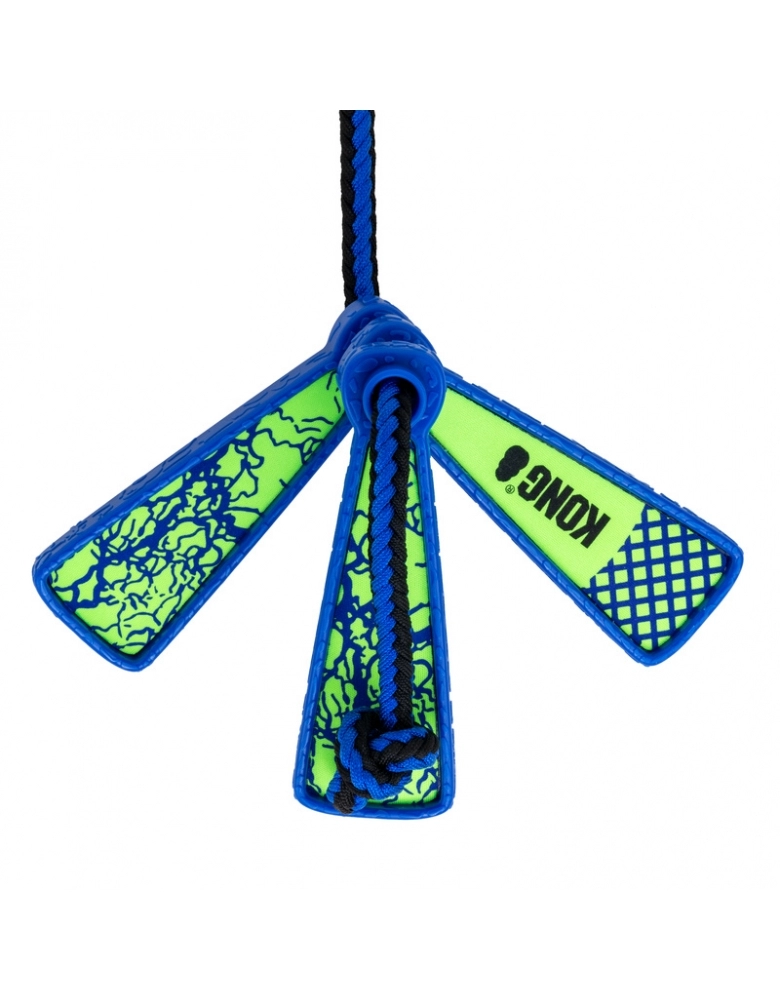 O KONG Whirlz Rope é um brinquedo inovador, Feito para brincadeiras de jogar e trazer que pode ser usado tanto na água quando no seco. Possui 3 asas giratórias que giram quando o brinquedo é arremessado no ar., o que estimula ainda mais o predador a corer para caçar sua presa.