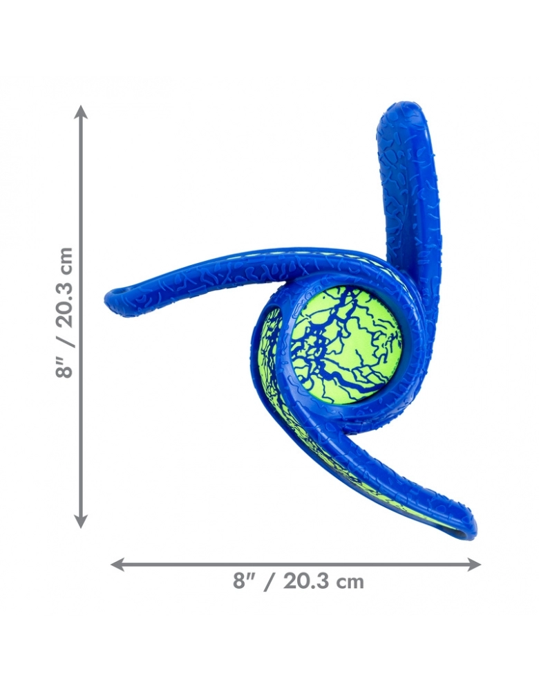 O KONG Whirlz Throw é um brinquedo inovador, Feito para brincadeiras de jogar e trazer que pode ser usado tanto na água quando no seco. Suas asas giratórias fazem com que os quiques sejam imprevisíveis, assim como sua rolagem o que estimula ainda mais o predador a corer para caçar sua presa.