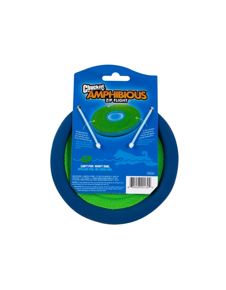 Chuckit! Amphibious Zipflight é um flyer com características únicas. Possui bordas de borracha para não machucar a boca ou quebrar dentes do cão e não permite que o disco afunde na água. São feitas com matéria ultra durável para brincadeiras intermináveis. Cores vibrantes para aumentar a visibilidade e evitar perdas. Seu design e materiais garantem voos longos e distantes. Flutua na água