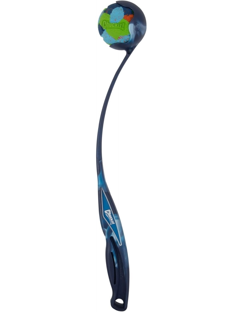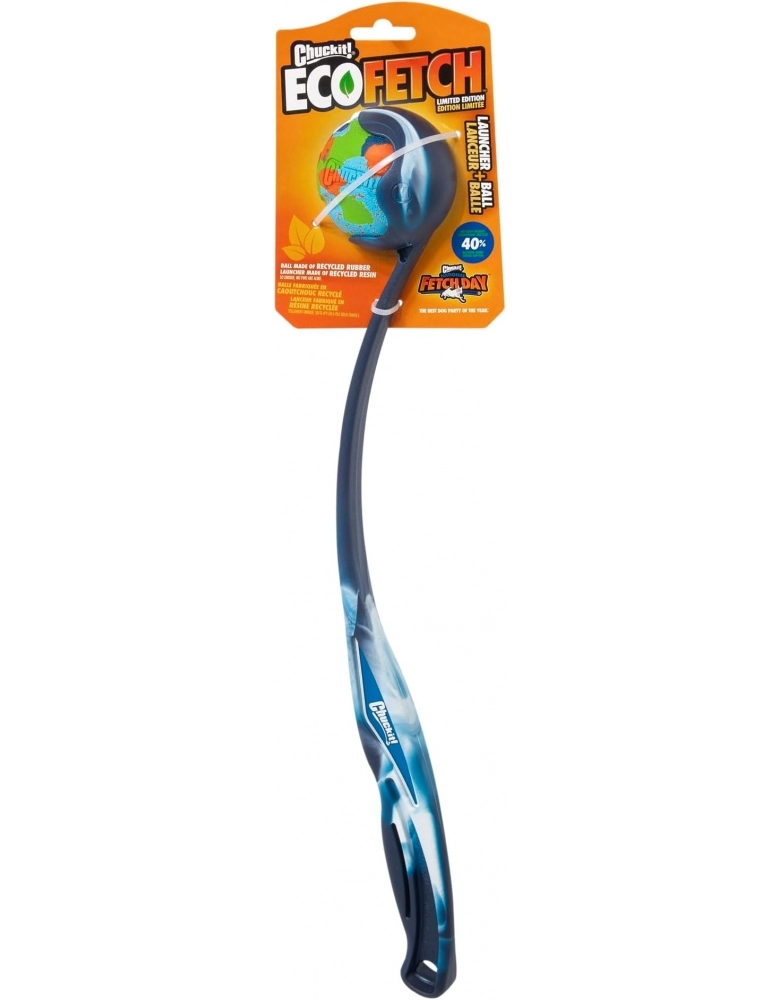 Chuckit! Ecofetch é um arremessador de bolinhas à longas distâncias feito com 40% de material reciclado. Com ele você consegue arremessar bolinhas à distâncias 2 vezes maiores. Você também consegue pegar as bolinhas babadas, durante as brincadeiras, sem usar as mãos. Este arremessador é para qualquer bolinha chuckit tamanho grande. Vem com uma bolinha Ecofetch, feita com materiais reciclados.