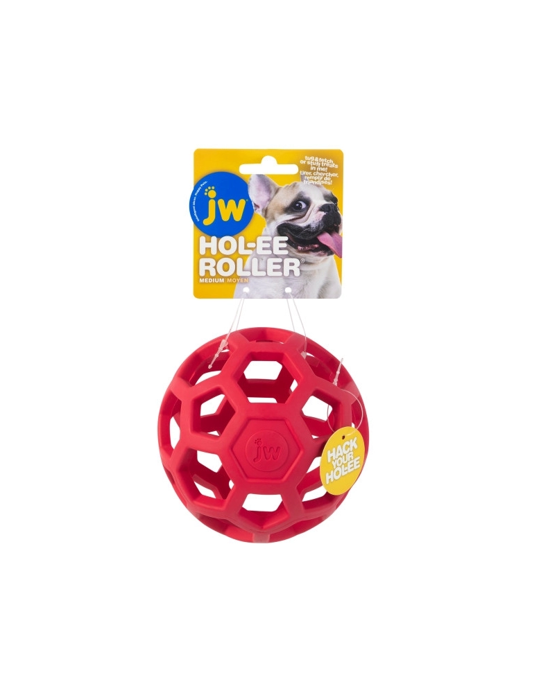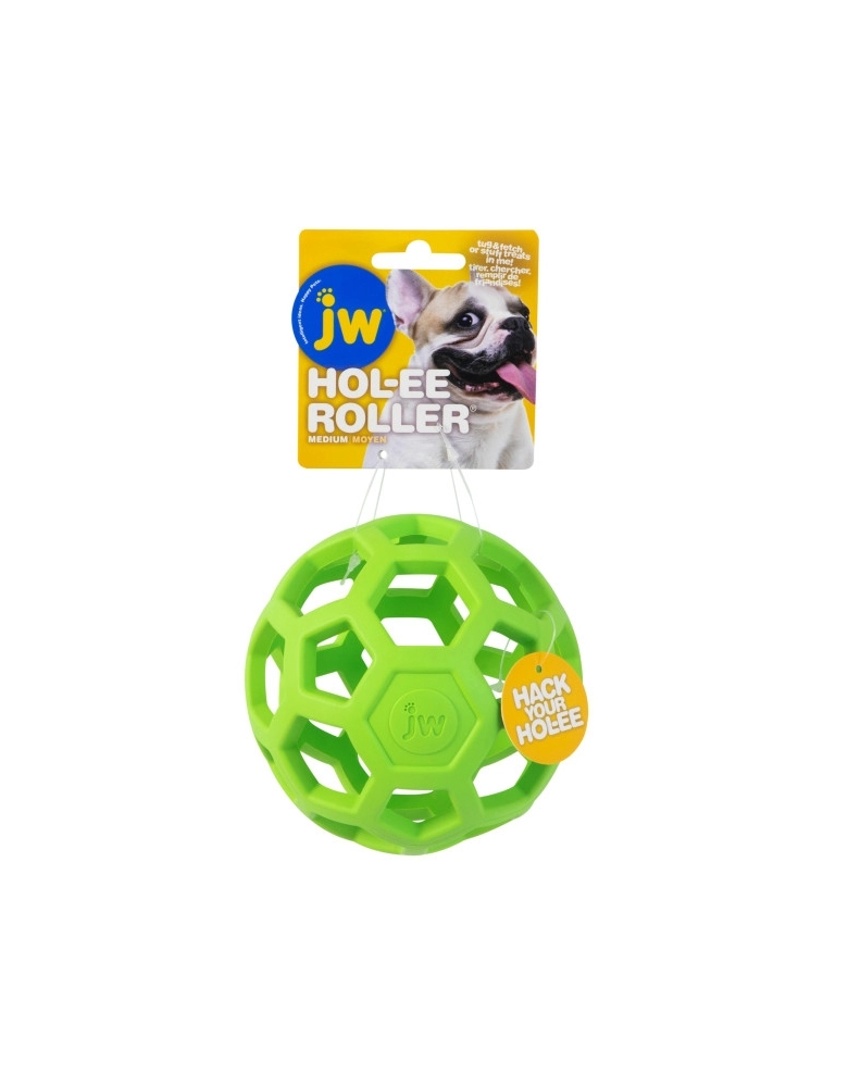 JW Puppy Hol-ee Roller é feito com qualidade e material que não é tóxico para seus cães. Feito com borracha macia e elástica, permite que os papais do pet adicionem o que quiserem dentro da bolinha para torná-la ainda mais atrativa e desafiadora. Cubos de gelo, petiscos, bifinhos, enfim, o que sua imaginação permitir.