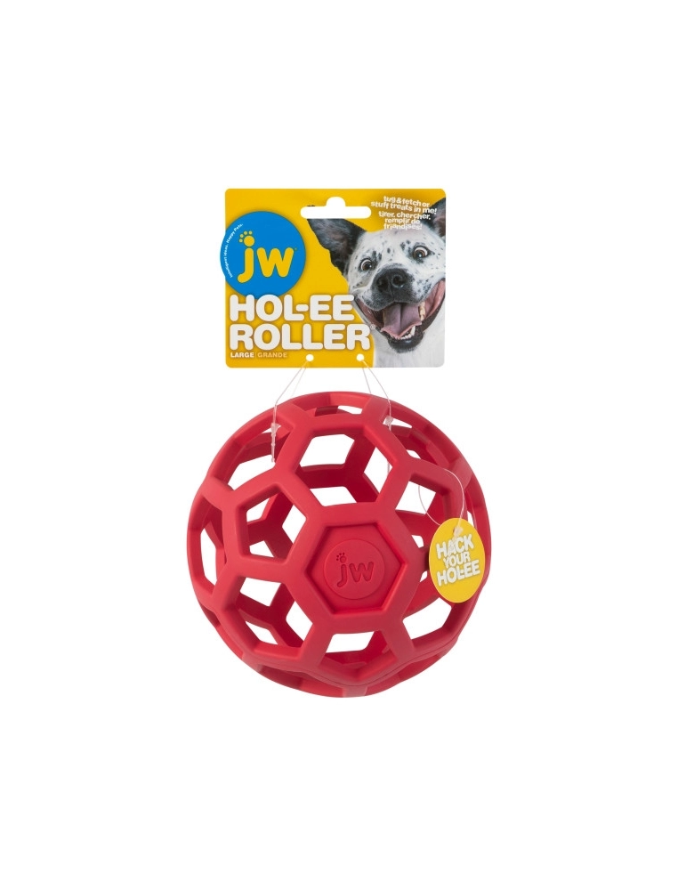 JW Hol-ee Roller é feito com qualidade e material que não é tóxico para seus cães. Feito com borracha macia e elástica, permite que os papais do pet adicionem o que quiserem dentro da bolinha para torná-la ainda mais atrativa e desafiadora. Cubos de gelo, petiscos, bifinhos, enfim, o que sua imaginação permitir.