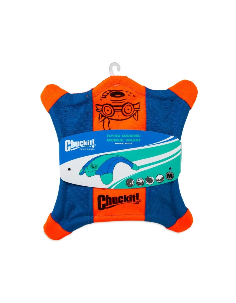Chuckit! Flying Squirrel é um flyer com formato de esquilo voador. Possui bordas de borracha para não machucar a boca do cão. São feitas com matéria ultra durável para brincadeiras intermináveis. Cores vibrantes para aumentar a visibilidade e evitar perdas. Seu design e materiais garantem voos longos e distantes. Flutua na água