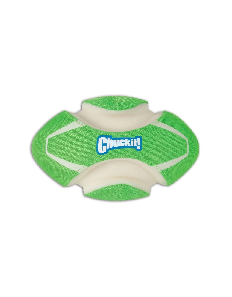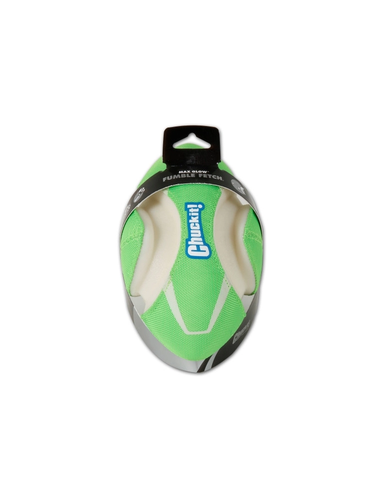 Chuckit! Fumble Fetch apresenta cores vibrantes e marcantes que estimulam o cão e o torna visível mesmo no meio do mato. Além disso, brilha no escuro! Basta você colocar sob luz forte por 5 a 10 minutos para ter 20 a 30 minutos de diversão noturna. Feito para ser chutado longe para seu cão buscar. Seu quique irregular tornará a brincadeira ainda mais atrativa. Feita com borracha e espuma, é recoberta com tecido resistente. Possuii um formato que permite que o cão segure-a facilmente. Perfeita para brincadeiras na água, pois flutua.