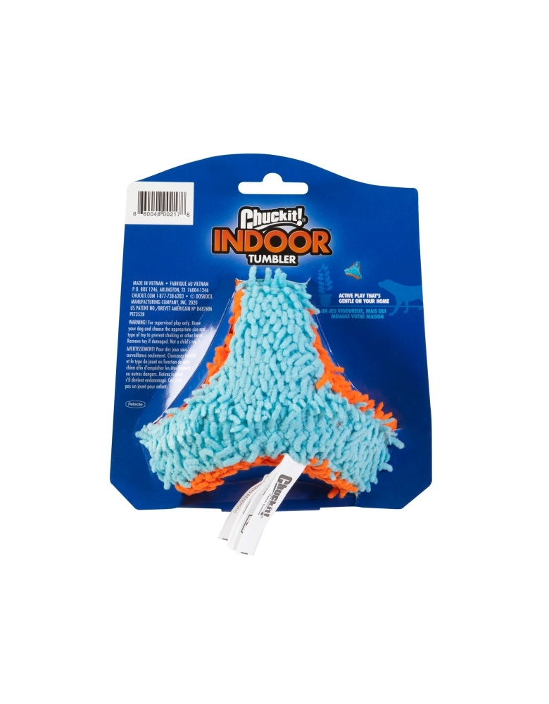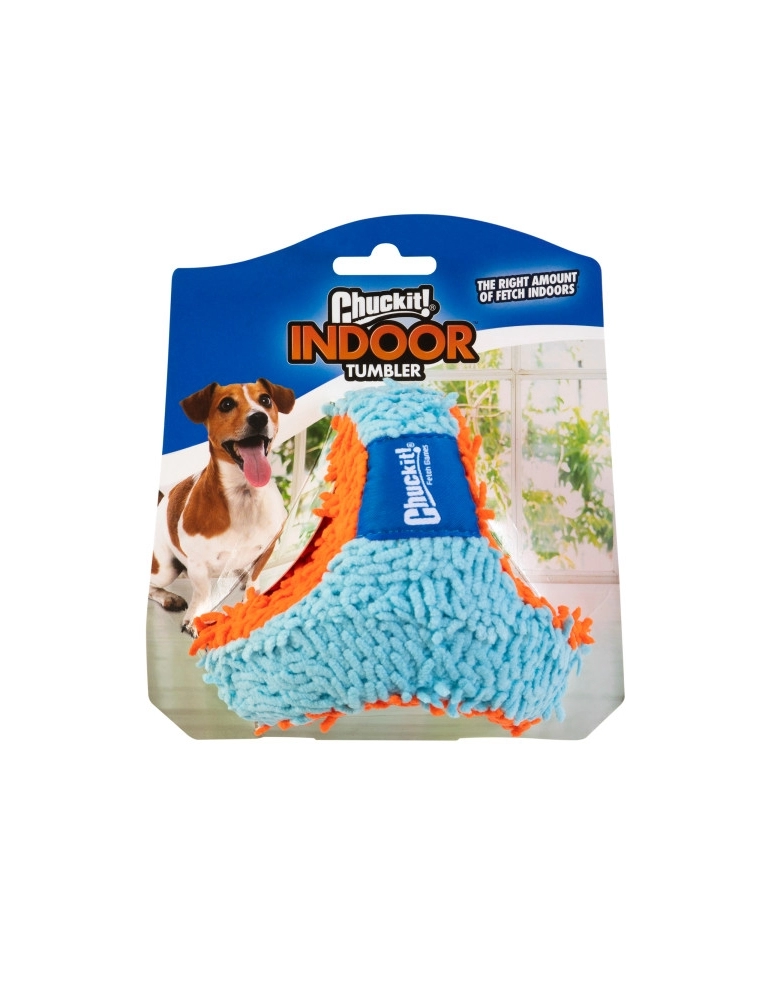 Chuckit! Indoor Tumbler é uma excelente alternativa para dias chuvosos onde as brincadeiras devem ser dentro de casa. É um brinquedo feito com materiais ultra leves, mas muito resistentes. Se bater em algum objeto, não irá quebrá-lo e ainda assim, mantém um quique perfeito pra brincadeiras. É totalmente silencioso, não contendo apito. Suas cores vibrantes são marcantes e estimulam o cão e a torna visível mesmo em qualquer lugar.