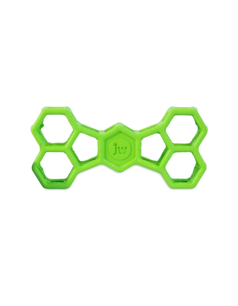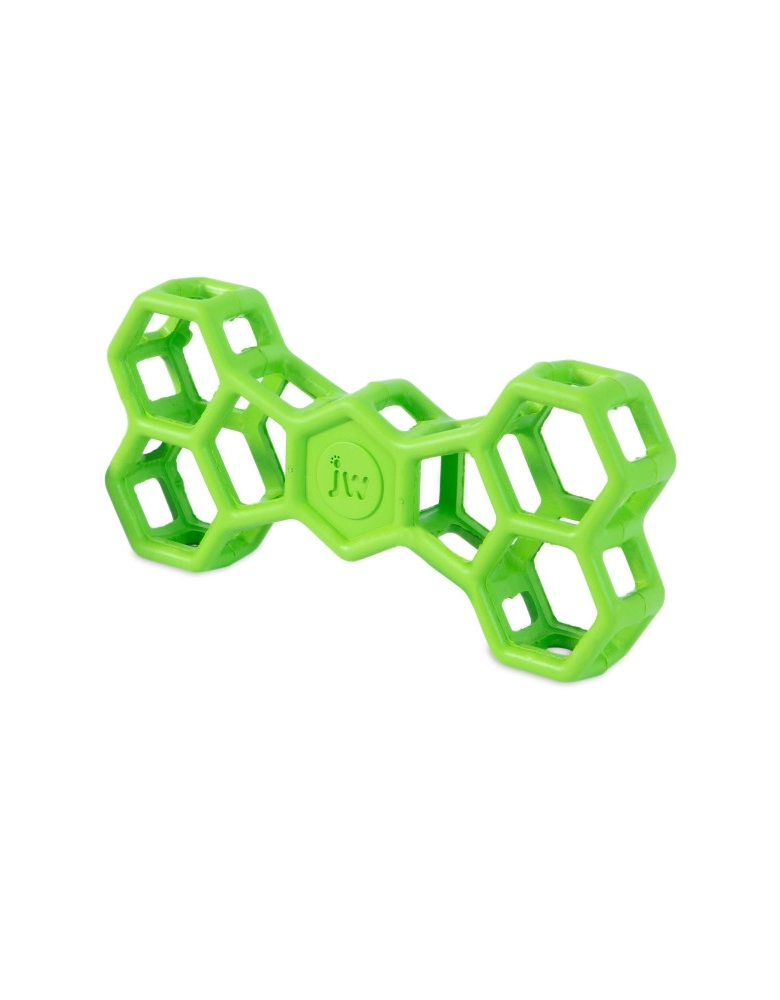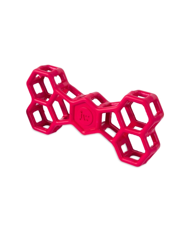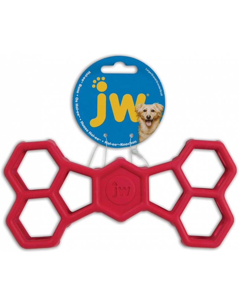 JW Hol-ee Bone é feito com qualidade e material que não é tóxico para seus cães. Feito com borracha macia e elástica, permite que os papais do pet adicionem o que quiserem dentro do brinquedo para torná-lo ainda mais atrativo e desafiador. Cubos de gelo, petiscos, bifinhos, enfim, o que sua imaginação permitir.