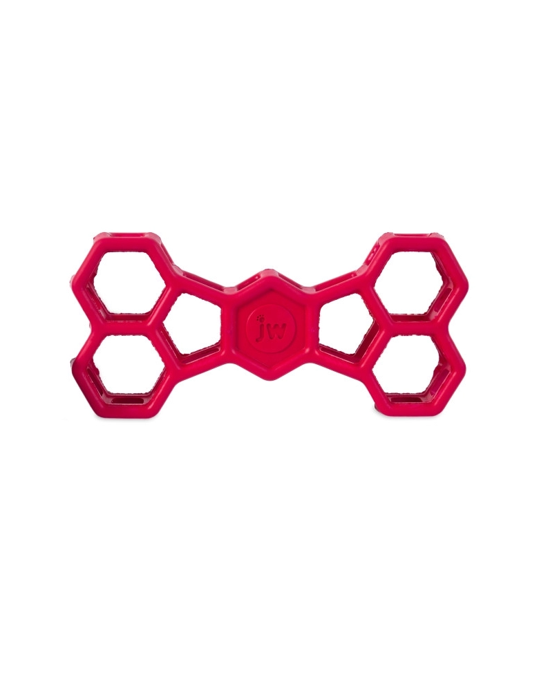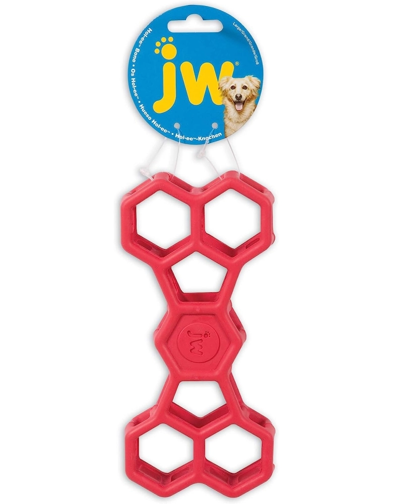 JW Hol-ee Bone é feito com qualidade e material que não é tóxico para seus cães. Feito com borracha macia e elástica, permite que os papais do pet adicionem o que quiserem dentro do brinquedo para torná-lo ainda mais atrativo e desafiador. Cubos de gelo, petiscos, bifinhos, enfim, o que sua imaginação permitir.