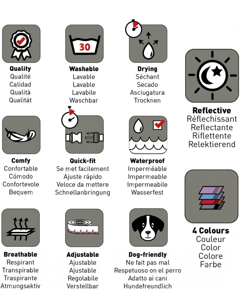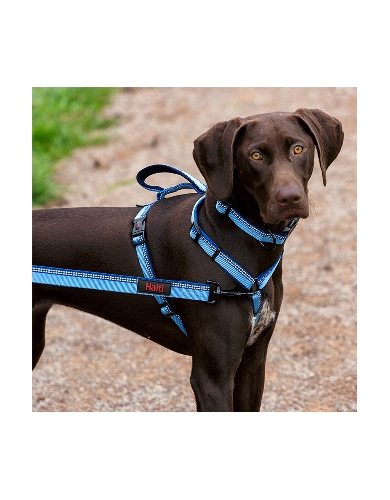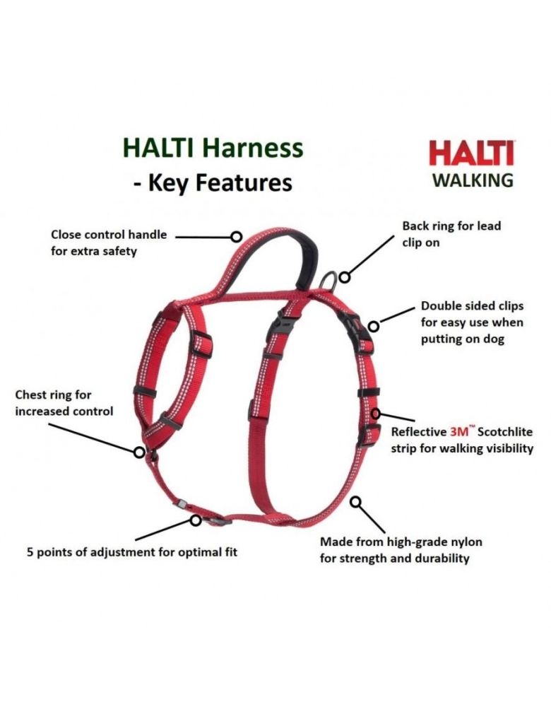 Walking Harness – Peitoral com pontos reflexivos para visibilidade total durante o dia ou à noite. Possui um pegador traseiro para controle mais próximo, auxiliar subir e descer de um veículo ou degraus, por exemplo. Tem dois pontos de conexão, um atrás e outro na frente para maior segurança e controle anti-puxão e adestramento. Possui 5 pontos de ajuste para maior conforto e segurança.