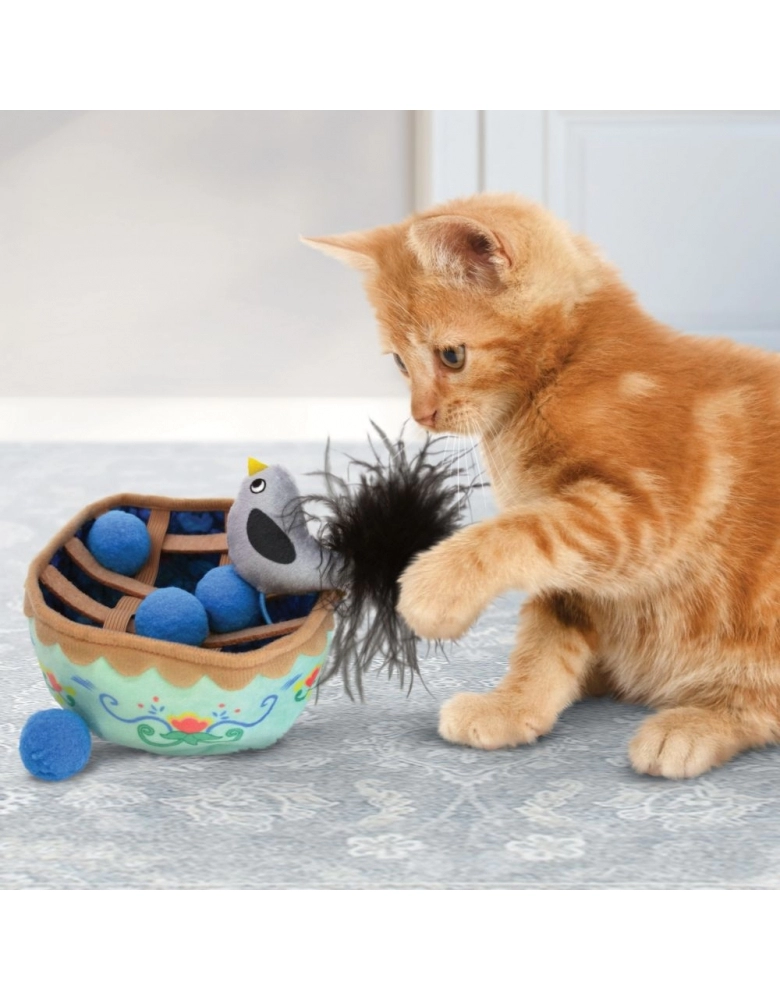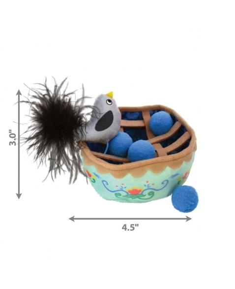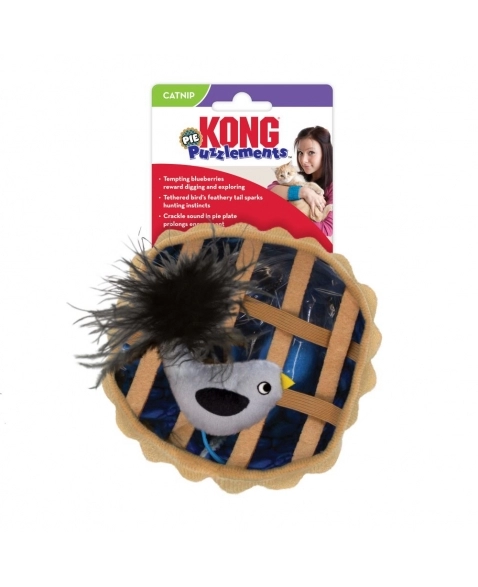 KONG Cat Puzzlements Pie oferece uma festa de recompensas para gatos que amam cavar e caçar. Embalado com o Catnip Original e exclusivo da KONG, contém um pássaro que fica preso a um elástico que aguça e estimula os instintos de caça. Quatro “blueberries” que são bolinhas de pelúcia estimulam o gato a capturar e bater com as patinhas. Os estalidos no corpo da torta faz com que a brincadeira seja ainda mais estimulante. Importante: Inspecione o brinquedo com frequência e descarte caso apresente danos. Remova toda a embalagem antes de oferecer ao gato.
