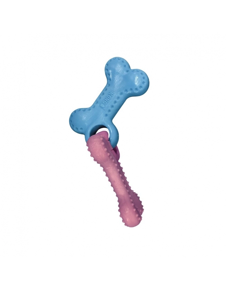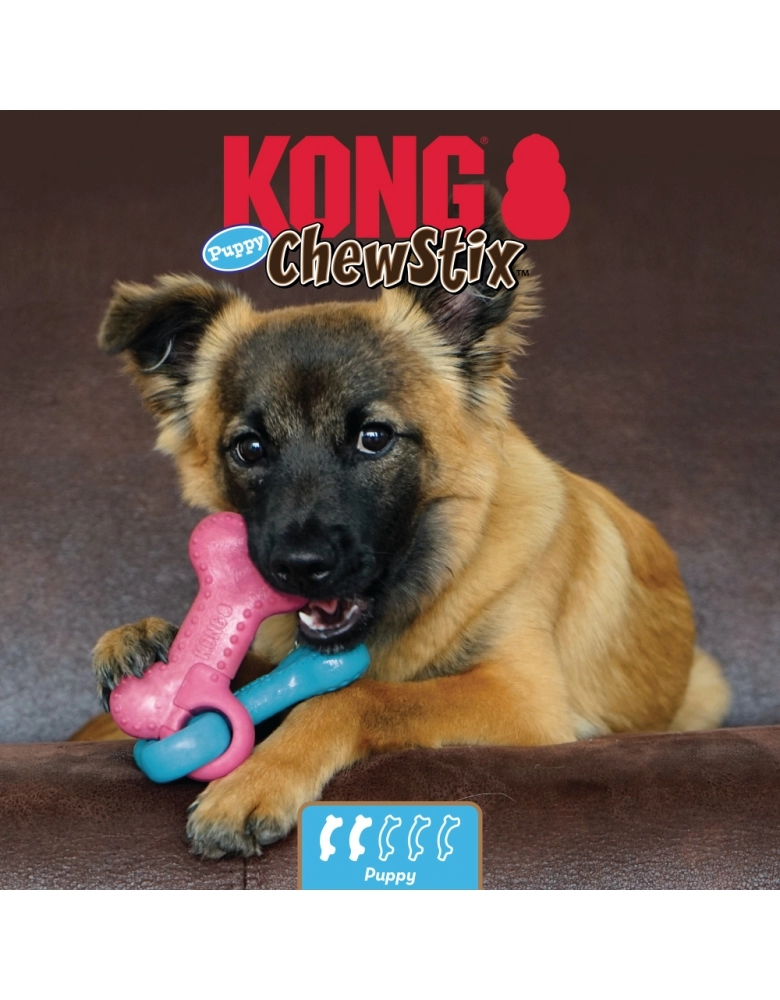 KONG ChewStix Puppy Link Bones é o primeiro brinquedo de roer de seu cão, feito com Nylon e Madeira de verdade formulado com toda segurança para seu filhote. Feito para direcionar desde as primeiras fases da vida, a mordida se seu cão para objetos seguros e desejáveis em vez de móveis e objetos da casa. Contém madeira de verdade para atrair seu cão, e uma suave fragrância de côco. Possui textura perfeita, não muito rígida e é uma solução duradoura para a fase de troca de dentes de seu cão