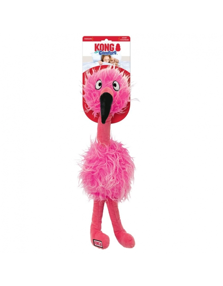 KONG Comfort Jumbo é um brinquedo gigante, interativo, ideal para brincadeiras leves e, também, aconchegar. Possui apitos para aumentar ainda mais o engajamento. Deve ser supervisionado o tempo todo. Ao terminar de brincar, retire do cão caso não esteja seguro que ele não irá destruí-lo. Importante: Não é um brinquedo de mastigação. Embora feito com material resistente, se deixado com cão destrutivo, ele poderá destruir rapidamente. Designado a cães de mordida moderada. Para cães de mordidas mais fortes e comportamento destrutivo, procure um brinquedo KONG de borracha.
