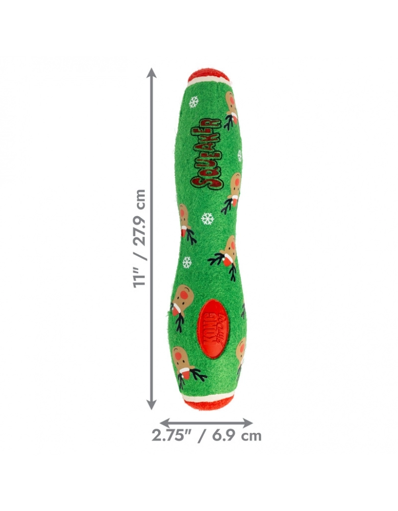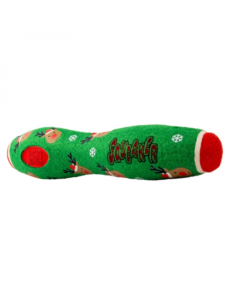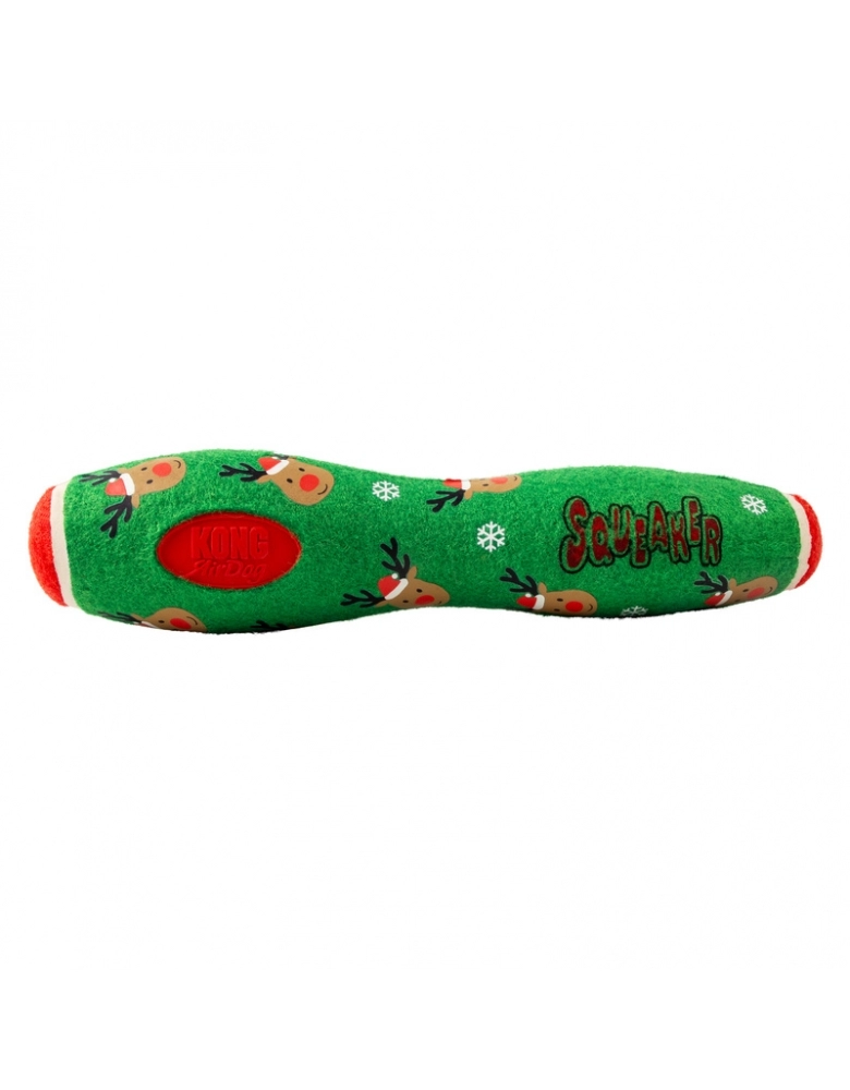 O KONG Holiday AirDog combina dois brinquedos favoritos - uma bola de tênis e um apito - em um fabuloso brinquedo de busca para ajudar os cachorros a entrarem nas festas de fim de ano com muita diversão. O material não abrasivo da KONG Tennis é mais macio para os dentes do que o feltro da bola de tênis comum. O apito chama os cães para brincar, enquanto o quique proporciona rebotes imprevisíveis, rolando e buscando diversão com um brinquedo natalino para cães.
