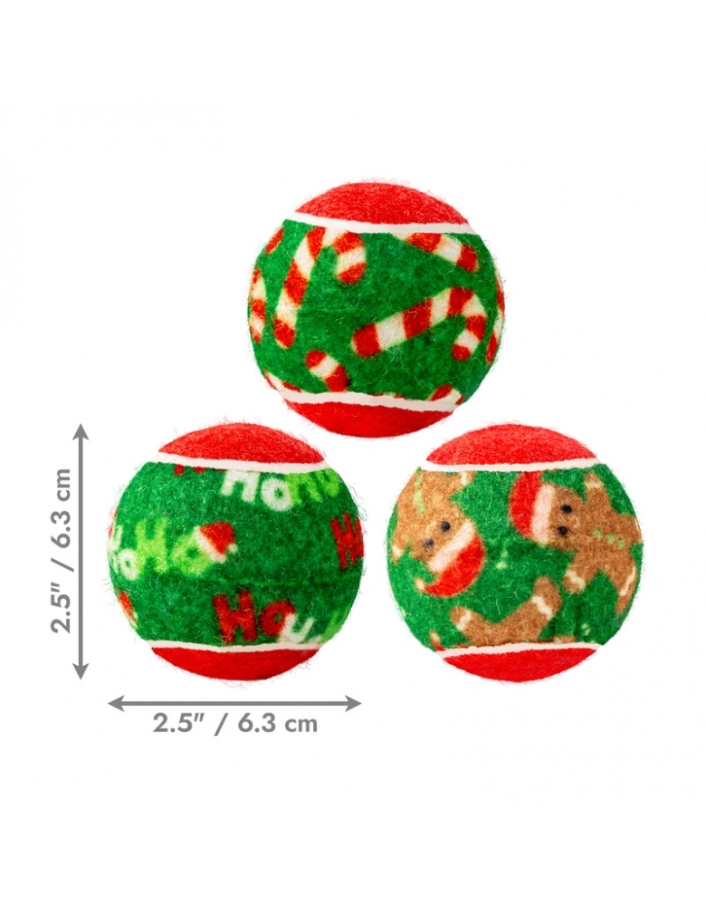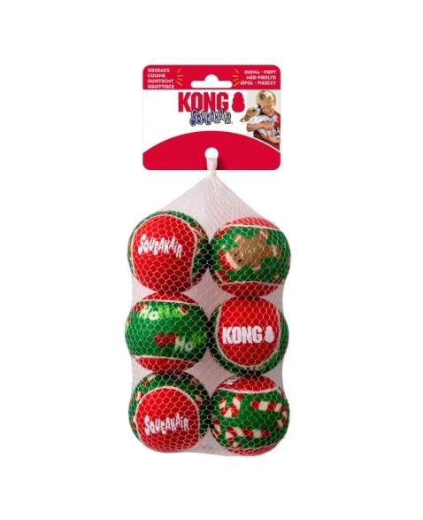As bolas KONG Holiday SqueakAir combinam dois favoritos dos cães - uma bola de tênis e um apito - em um fabuloso brinquedo que estimula os instintos naturais. O material não abrasivo da KONG Tennis nessas 6 bolas é mais macio para os dentes do que o feltro das bolas de tênis comuns. O apito chama os cães para brincar e os mantém engajados, enquanto o quique lança os filhotes na diversão de buscar com uma celebração de bonecos de neve, luzes e renas com as cores do natal.