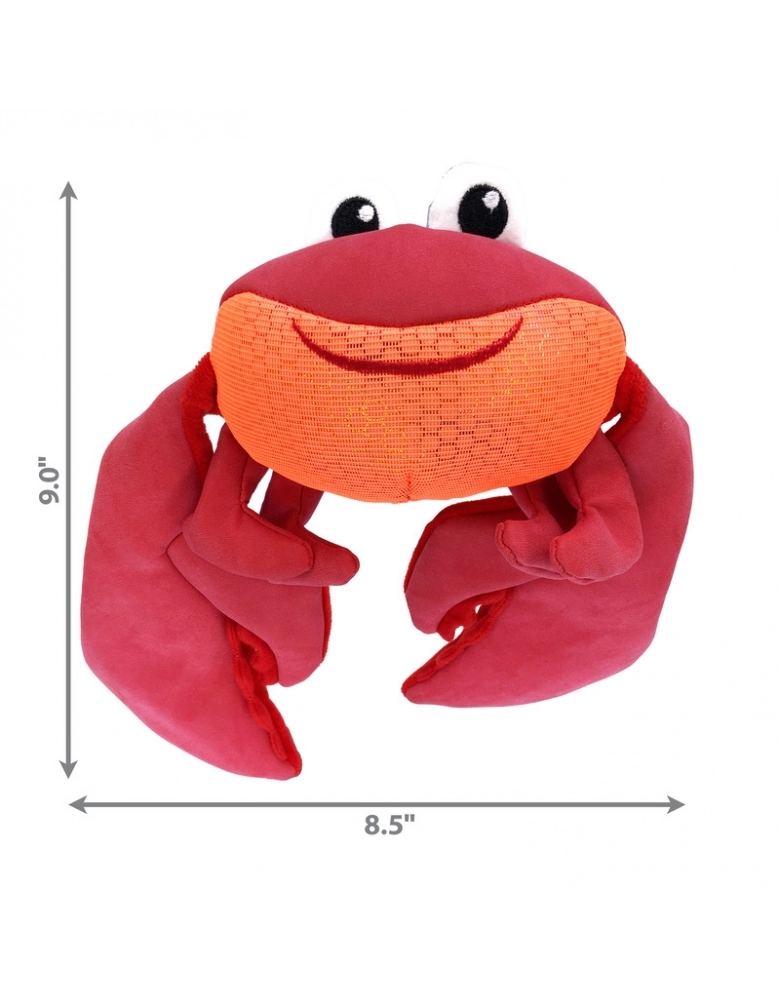 KONG Shakers Shimmy Crab é um brinquedo desenvolvido para cães de mordida leve e não destruidores. Desenhado com tamanho grande com abas gigantescas que satisfazem o instinto de chacoalhar a presa, dos cães. O corpo alongado torna o ato de chacoalhar mais divertido. Possui apitos para aumentar o engajamento. As abas possuem estalidos para estimular ainda mais o seu cão. Perfeito pra ser jogado em brincadeiras de jogar e trazer. Importante: Não é um objeto de roer. Não deve ser deixado sozinho com o cão nem por alguns minutos, até ter certeza de que o cão não irá destruí-lo,. Destinado à cães com mordidas leves. Para cães com mordida forte e destruidores, prefira os brinquedos de borracha natural. Acabada a brincadeira, guarde para a próxima.