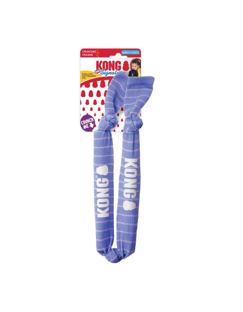 Signature Crunch Rope Double Puppy é um brinquedo destinado a filhotes, feito com um material interno que produz estalidos intrigantes que estimulam os instintos naturais do cão. O material externo, que lembra uma meia, é elástico e perfeito para mordidas divertidas no lugar certo (em vez de almofadas, objetos da casa ou suas mãos). Os nós nas pontas são perfeitos para mordidas e pegadas para cabos de guerra. Não possui apitos.