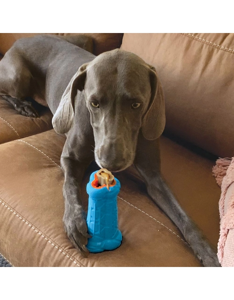 Importante: Destinado à cães de mordida leve/moderada. Para cães altamente destrutivos, recomendamos sempre brinquedos de KONG de borracha. Deve ser usado para oferecer um petisco ao cão. Quando terminado, remova o brinquedo, higienize e guarde. Não deixe com o cão, a não ser que tenha certeza absoluta que ele não tentará destruí-lo. Não é indestrutível. Observe e monitore sempre o uso. Se o cão começar a roê-lo ou morder de forma a destruí-lo remova e ofereça novamente. Consulte um adestrador caso tenha dificuldades. Lavar apenas com água e detergente. A garantia não cobre destruição por parte do cão, apenas defeitos de fabricação