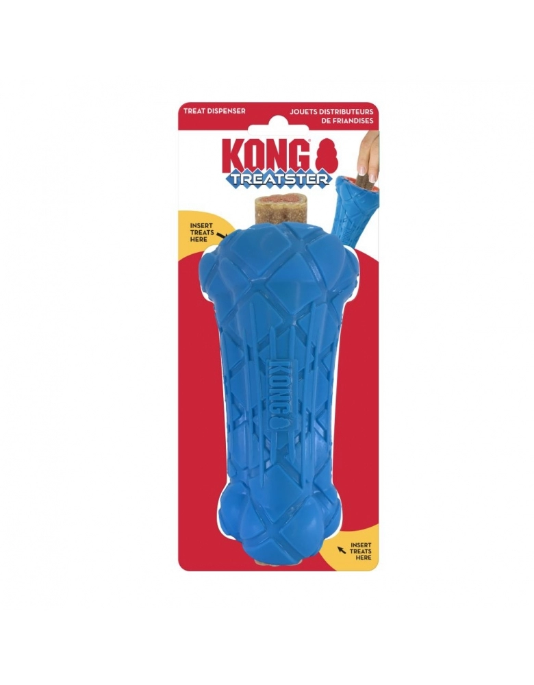 KONG Treatster é um brinquedo resistente que possui um orifício com rugosidade interna que agarram os petiscos e mordedores naturais para aumentar a diversão e o trabalho. Seu design interno permite que a dificuldade seja dosada. Possui uma textura única para recompensar maior diversão.