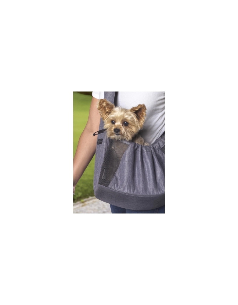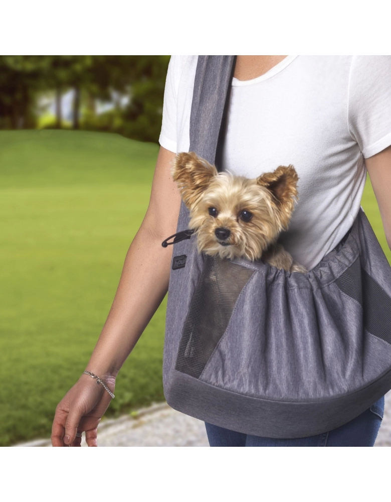 Esta mochila é feita com tira de malha bem recheada para conforto em seu ombro enquanto você a carrega. Possui um fundo removível e acolchoado para limpeza e maior conforto do cão. Feito com tecido resistente à água, macio e durável. Possui um cinto de segurança com fecho ajustável no topo da bolsa para aumentar a segurança. Possui laterais teladas para aumentar a ventilação. Possui bolso com zíper para você guardar os itens essenciais.