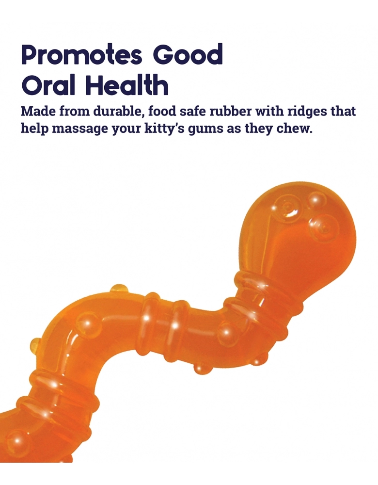 Este brinquedo é feito com infusão de óleo de Catnip para manter o gato atraído e interessado. Possui um tamanho e formato perfeitos para bater, perseguir e carregar. Ajuda na higienização dentária enquanto seu gato morde.