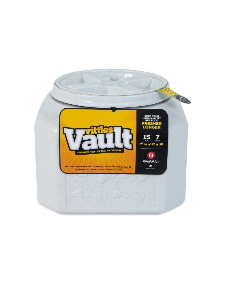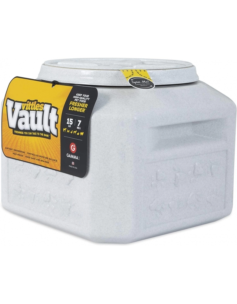 Vittles Vault são armazenadores de ração que auxiliam a manter o frescor do alimento de seu cão por muito mais tempo e vitando pragas, degradação de vitaminas e perda da umidade. Construído com material seguro, livre de BPA.