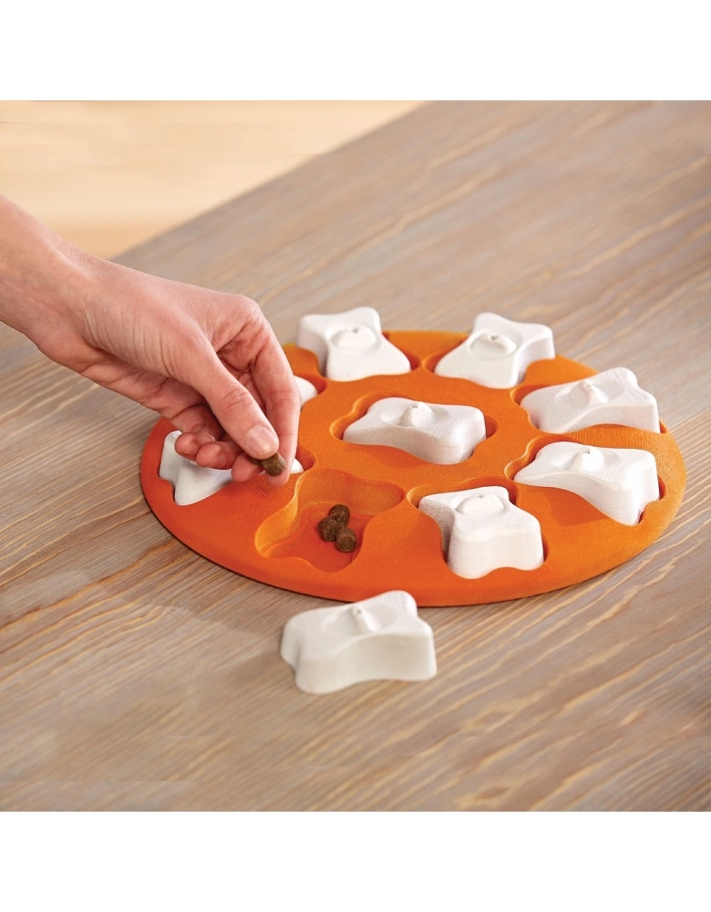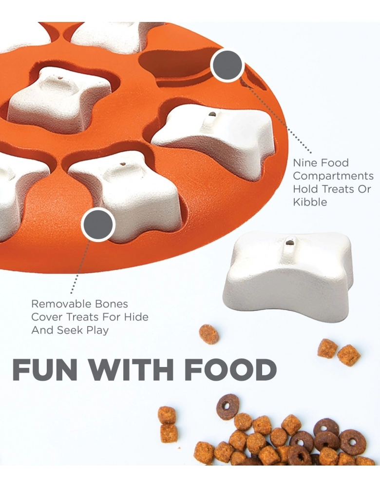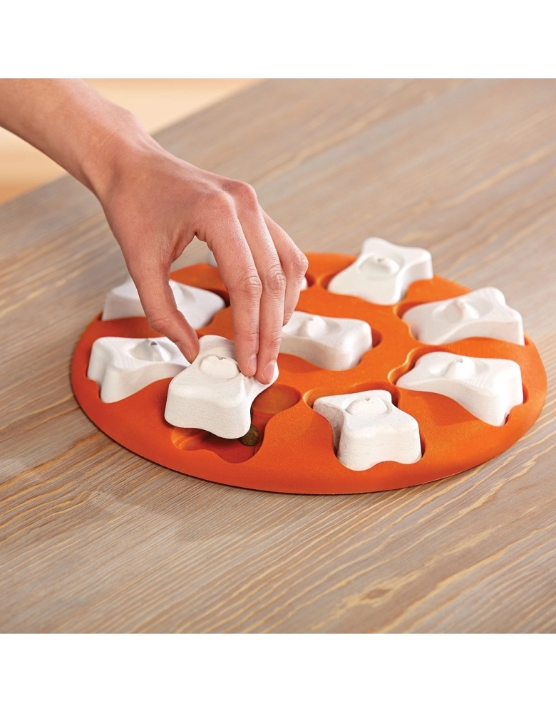 Este produto é nível 1 (novato) e visa exercitar a mente do seu cão para que ele encontre a melhor maneira de obter alimento. Estreita os seus laços com o cão. Ajuda a reduzir comportamentos indesejados como roer, cavar, latidos excessivos simplesmente exercitando a mente de seu cão. É muito divertido e fácil de usar. Indicado para todos os cães independente de idade, tamanho ou raça. Fácil de limpar. Observe seu cão aprendendo. Ofereça a seu cão para que ele se mantenha ocupado e entretido.