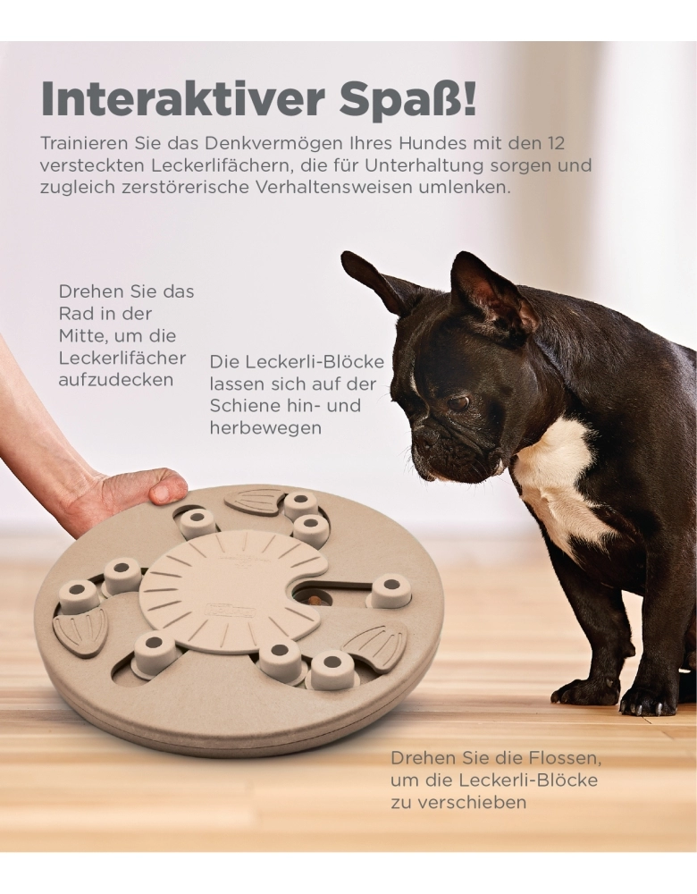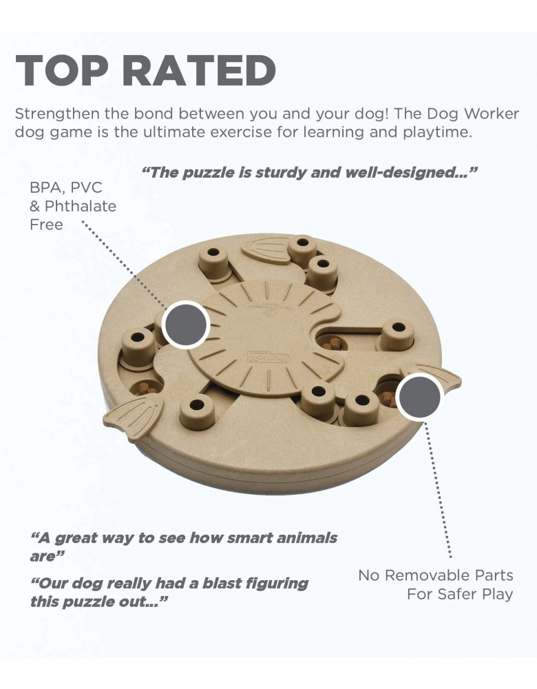 Você é novato com o Dog Worker? Cães são muito mais inteligentes que você pensa. Às vezes nós só precisamos ensiná-los. Deixe todos os flippers abertos e as trilhas descobertas e ensine como os blocos ciculares deslizam.Use petiscos realmente gostosos para que seu cão possa farejá-los. Queijo, bifinhos macios ou manteiga de amendoim funcionam muito bem. Para saber mais sobre os jogos da Nina Ottosson siga o perfil @lumare.import no Instagram. Serão publicados com frequência diversos vídeos educativos com bastante frequência. Limpeza: Lave usando água morna corrente da torneira e detergente neutro. Enxague completamente. Cuidados: Supervisione o uso o tempo todo. Inspecione regularmente se há danos e remova caso esteja quebrado. Se as partes se soltarem, poderão causar machucados. Destinado a cães somente. Mantenha fora do alcance das crianças. Este brinquedo deve ficar guardado até a próxima brincadeira e uso supervisionado. Não deixe seu cão mastigar ou roer as peças ou o brinquedo. Não há garantia quanto à destruição. Não é um brinquedo de roer. Uma vez sem alimentos ou petiscos, remova do contato com o cão. Não deixe o cão roer as peças soltas!