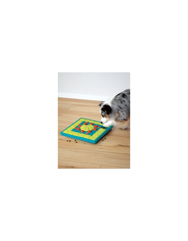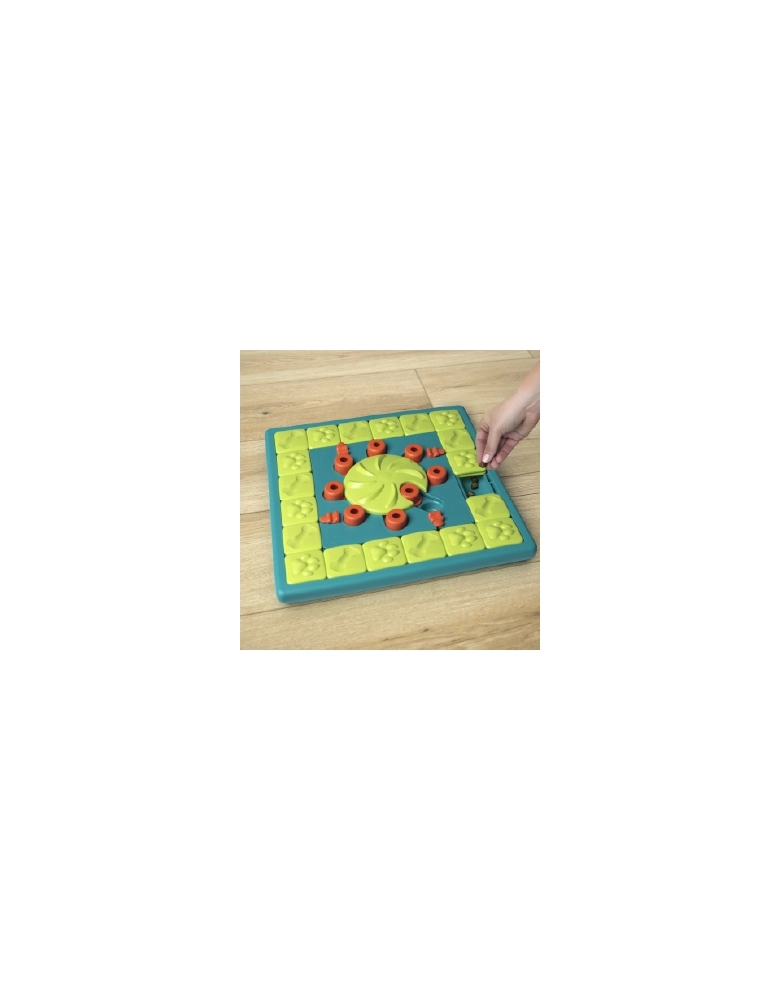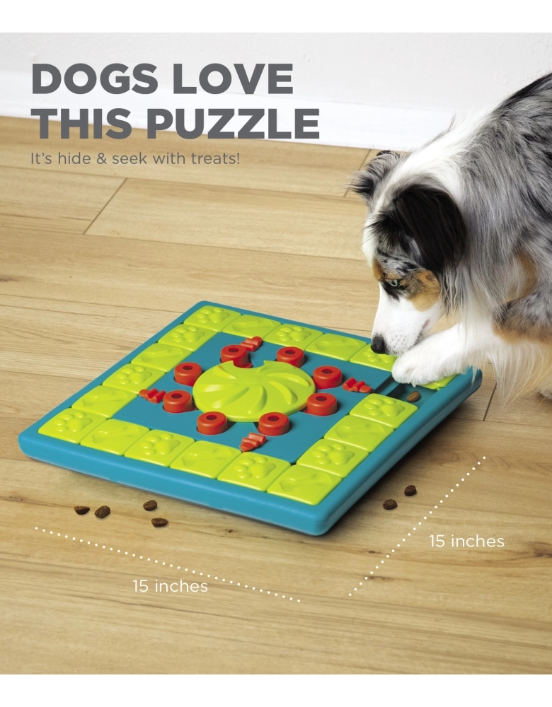Cães são muito mais inteligentes que você pensa. Às vezes nós só precisamos ensiná-los. Este é um jogo para experts. Talvez você precise ir apresentando e ajudando seu cão com os desafios aos poucos Comece preenchendo somente as partes externas da bandeja, deixando o jogo o mais fácil possível. Assim que o cão ficar craque na parte externa, preencha os outros sliders e coloque petiscos nos compartimentos centrais. Use petiscos realmente gostosos para que seu cão possa farejá-los. Queijo, bifinhos macios ou manteiga de amendoim funcionam muito bem. Para saber mais sobre os jogos da Nina Ottosson siga o perfil @lumare.import no Instagram. Serão publicados com frequência diversos vídeos educativos com bastante frequência.