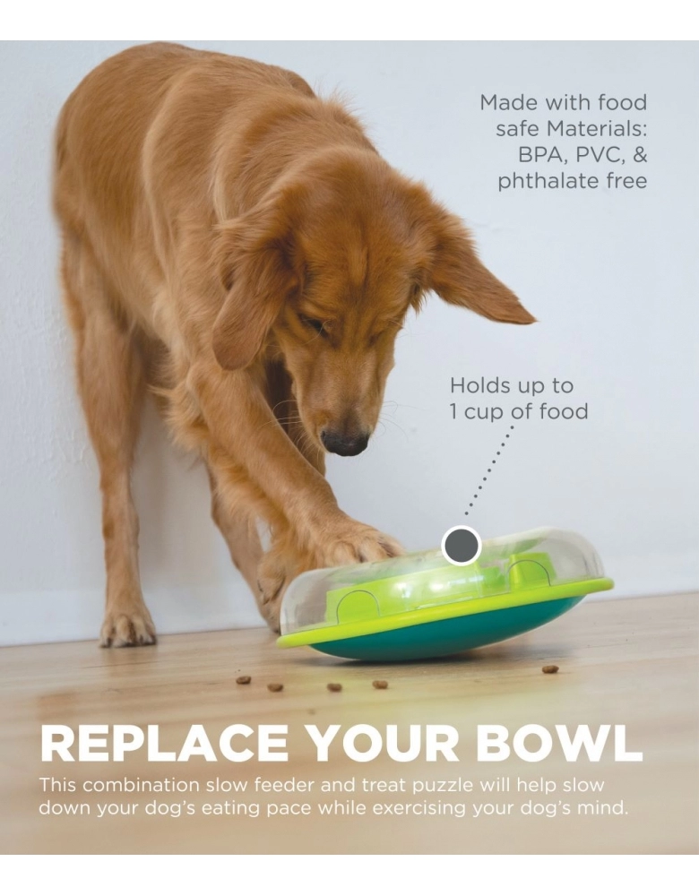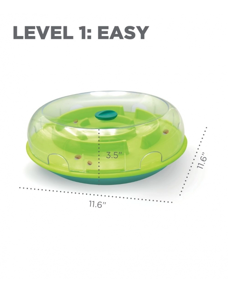 Este produto é nível 1 (novato) e visa exercitar a mente do seu cão para que ele encontre a melhor maneira de obter alimento. Torna a hora da refeição em um jogo interativo! Substitui o comedouro tradicional ajudando o cão a comer em um ritmo mais lento. Ajuda a reduzir comportamentos destrutivos exercitando a mente de seu cão. Possui uma tampa removível para facilitar a limpeza. Estreita os seus laços com o cão. Ajuda a reduzir comportamentos indesejados como roer, cavar, latidos excessivos simplesmente exercitando a mente de seu cão. É muito divertido e fácil de usar. Indicado para todos os cães independente de idade, tamanho ou raça. Fácil de limpar. Observe seu cão aprendendo. Ofereça a seu cão para que ele se mantenha ocupado e entretido.