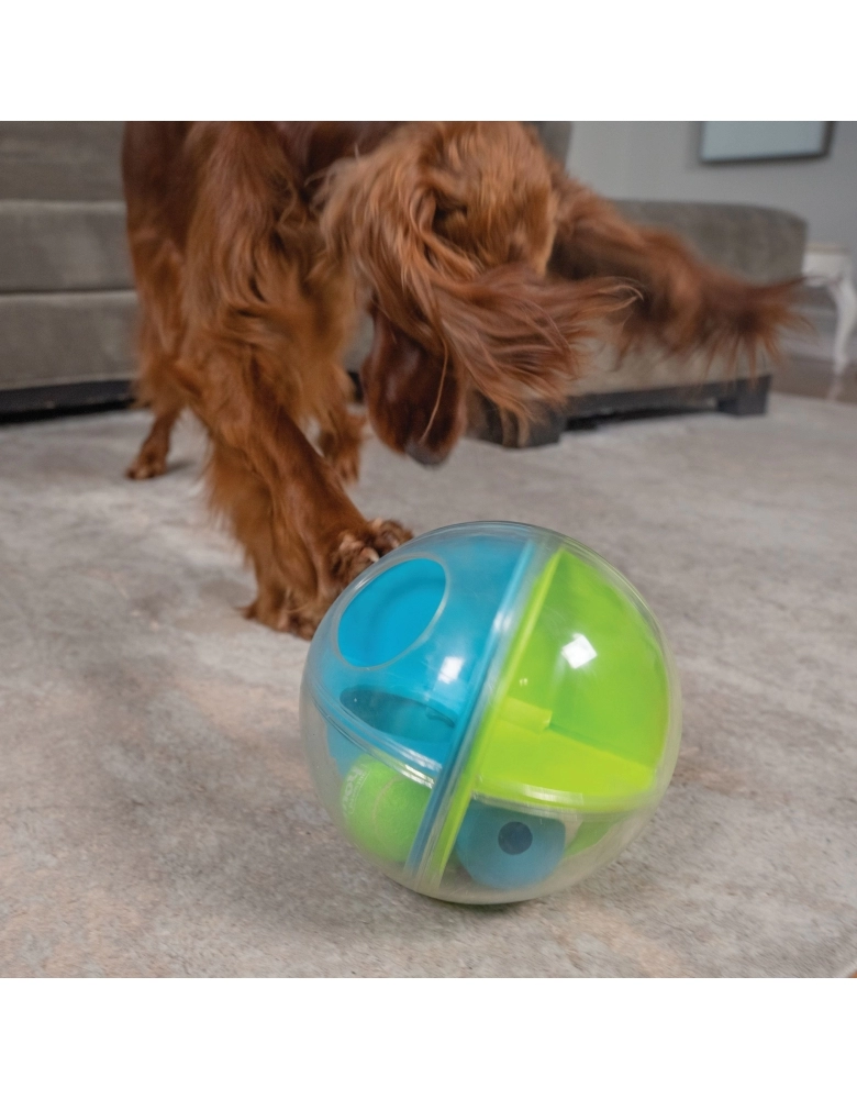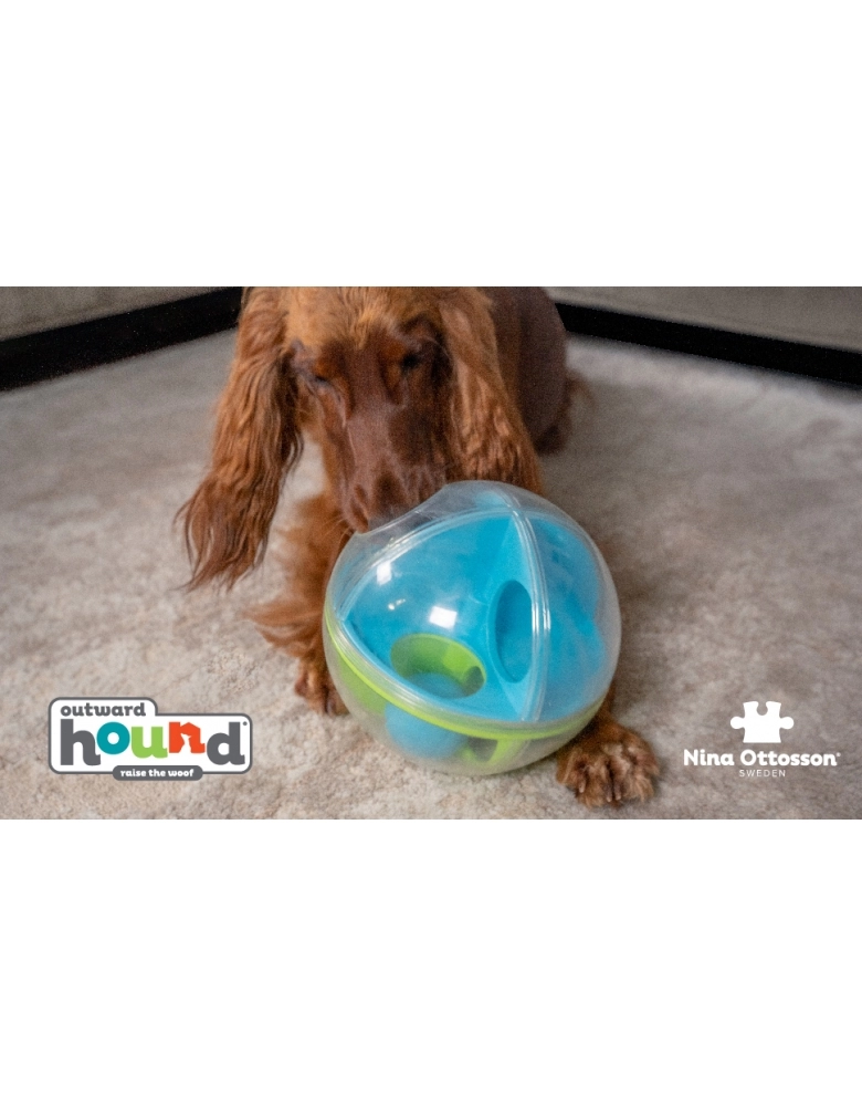 A-Maze Ball é um jogo de nível 2 (intermediário) e visa exercitar a mente do seu cão para que ele encontre a melhor maneira de obter alimento. É um brinquedo de rolar, feito para ser recheado com petiscos ou alimento que seu cão irá amar. 15 minutos de brincadeiras com estímulos mentais, equivalem a 30 minutos de brincadeiras físicas. Todo cão é um vencedor com os brinquedos da Nina Ottosson da Outward Hound. . Torna a hora da refeição em um jogo interativo! Substitui o comedouro tradicional ajudando o cão a comer em um ritmo mais lento. Ajuda a reduzir comportamentos destrutivos exercitando a mente de seu cão.